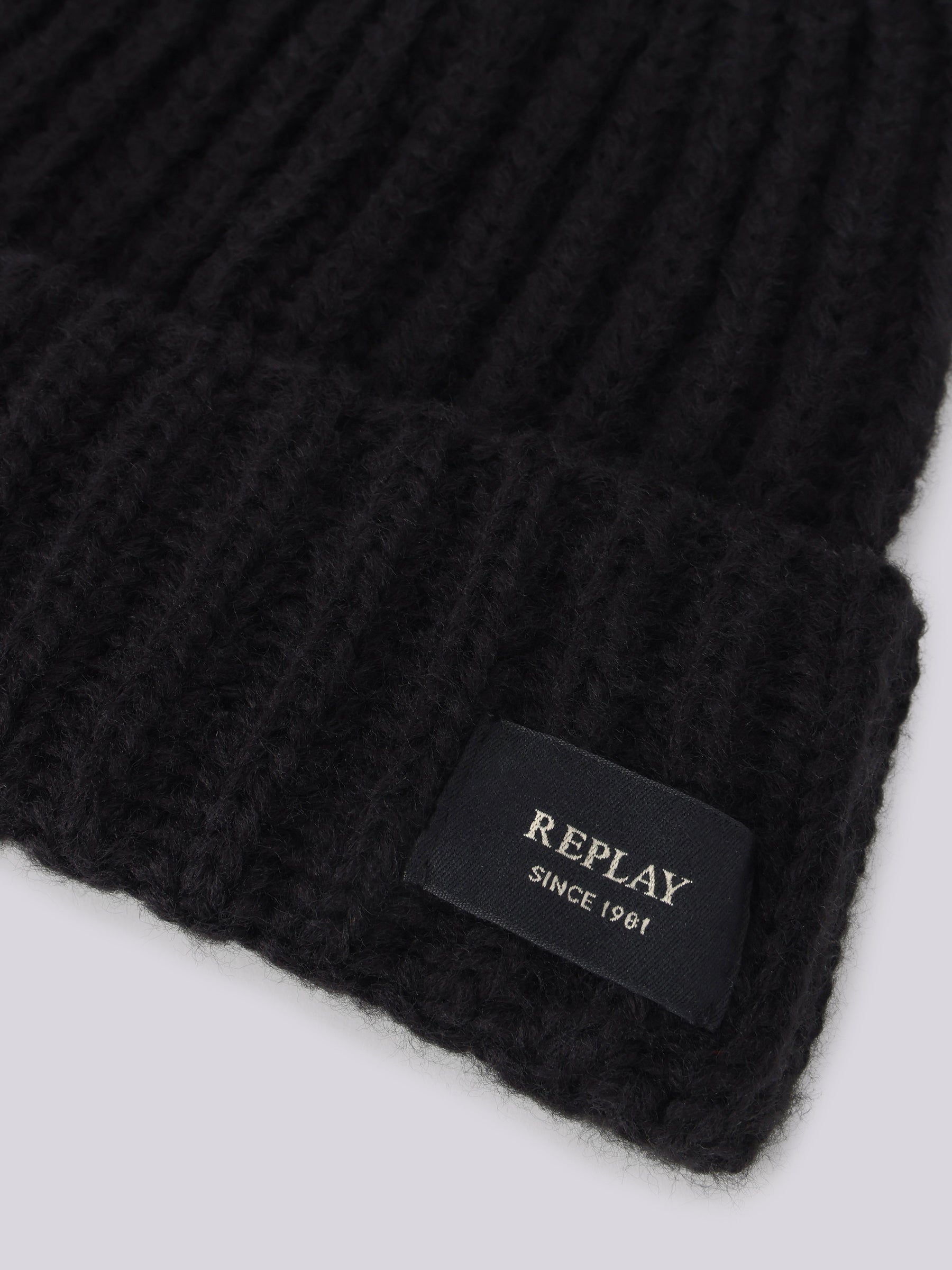 AX8022.000.A1003B Komplektas. Kepurė su "REPLAY" įsiuvu priekyje. Šalikas su "REPLAY" įsiuvu šone.