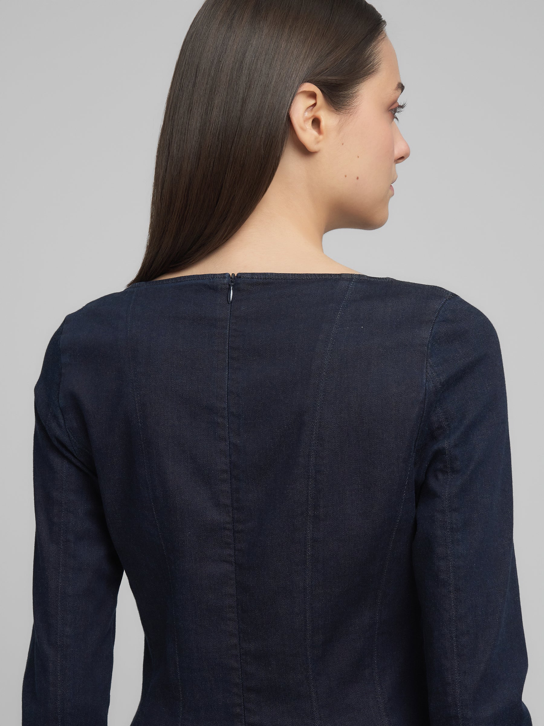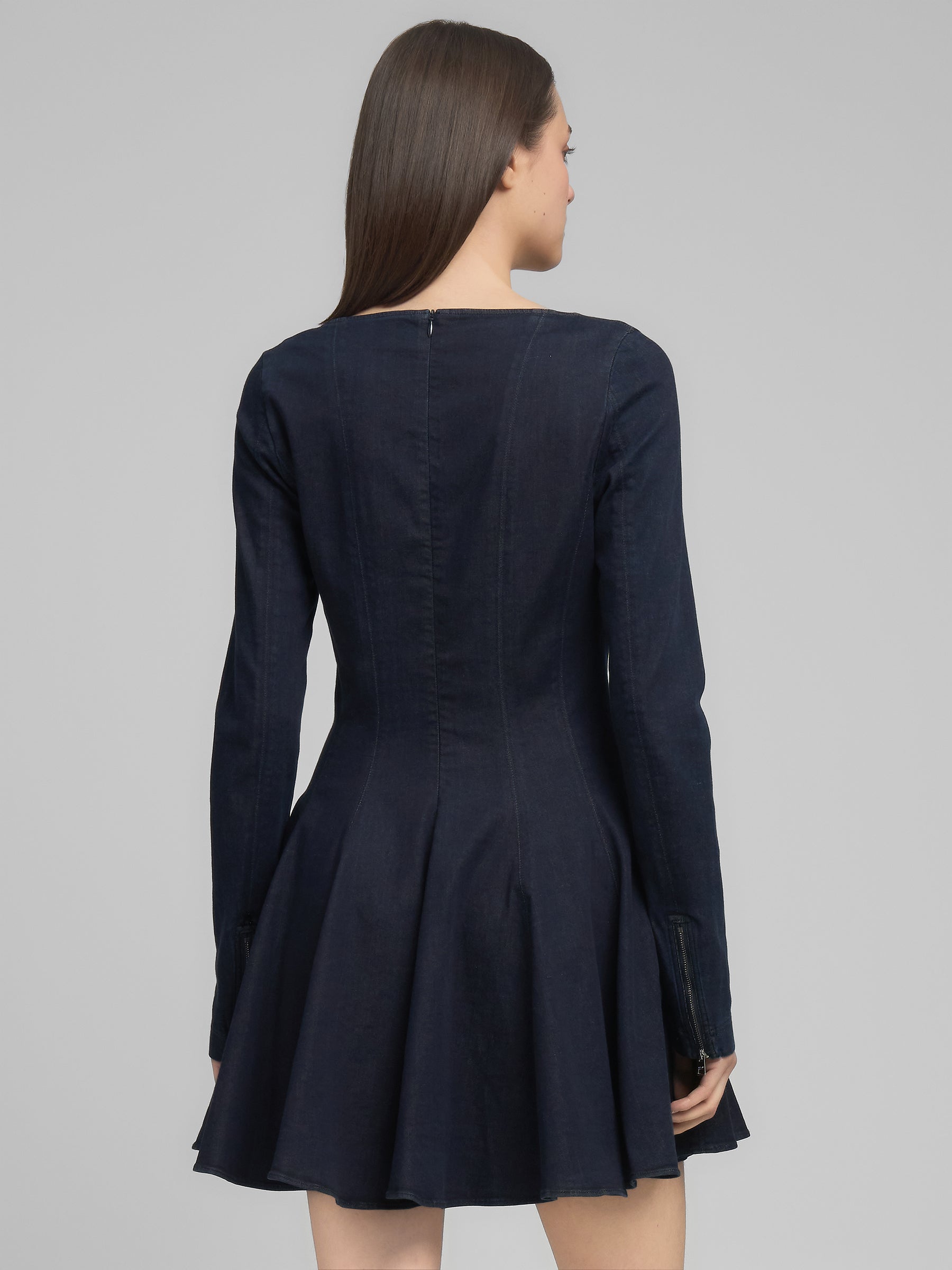 W9223 .000.821 93C Suknelė apvaliu kaklu ir ilgomis rankovėmis su užtrauktukais. Užsegimas užtrauktuku nugaroje.