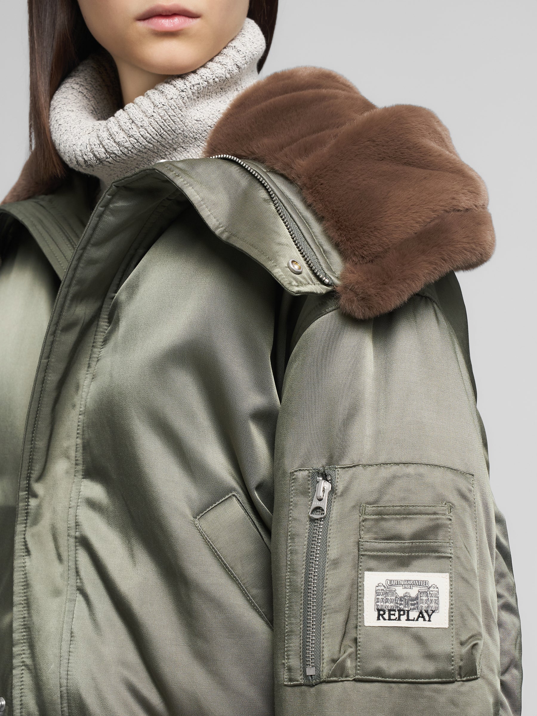 W7913 .000.85142 Striukė ilgomis rankovėmis su dviem kišenėmis priekyje ir papildoma ant rankovės su "REPLAY" įsiuvu. Su užsisegamu kapišonu. Užsegimas užtrauktuku ir spaudėmis.
