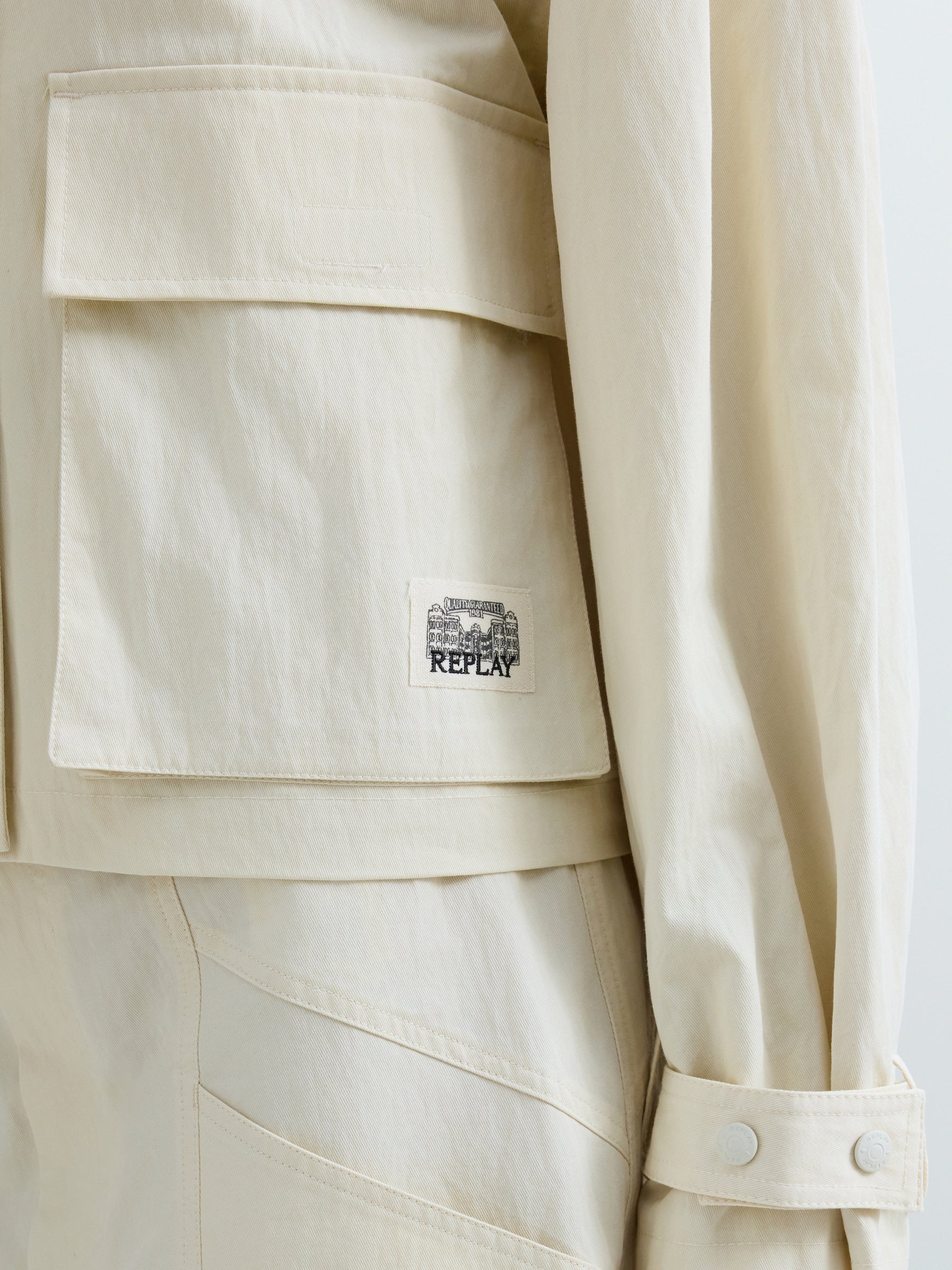 W7894 .000.85488 Trumpa striukė ilgomis rankovėmis su dviem kišenėmis priekyje ir "REPLAY" įsiuvu. Užsegimas užtrauktuku ir sagomis.