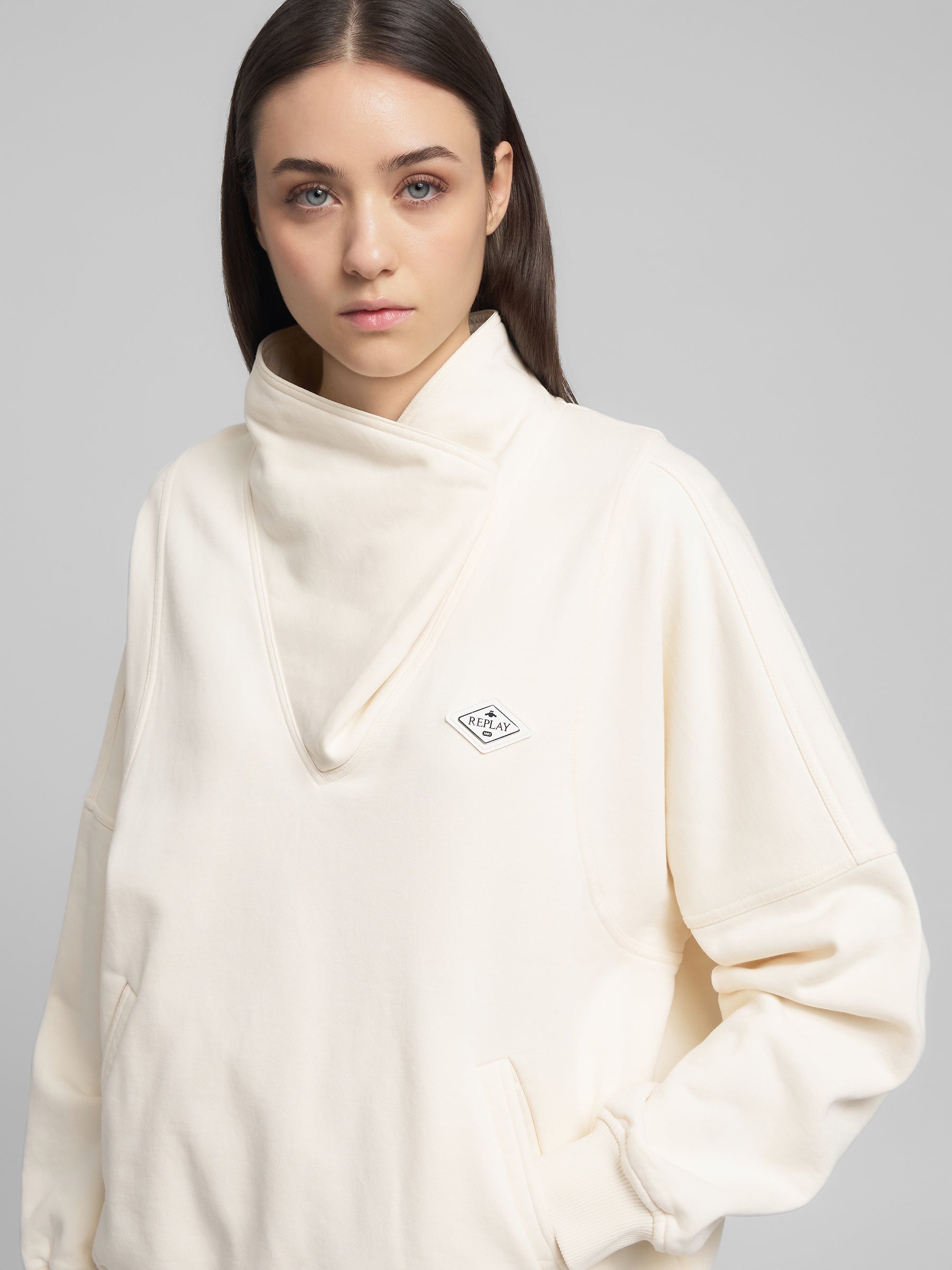 W3509 .000.23942 Džemperis ilgomis rankovėmis su išskirtine kaklo detale. "REPLAY" įsiuvas ant krūtinės.