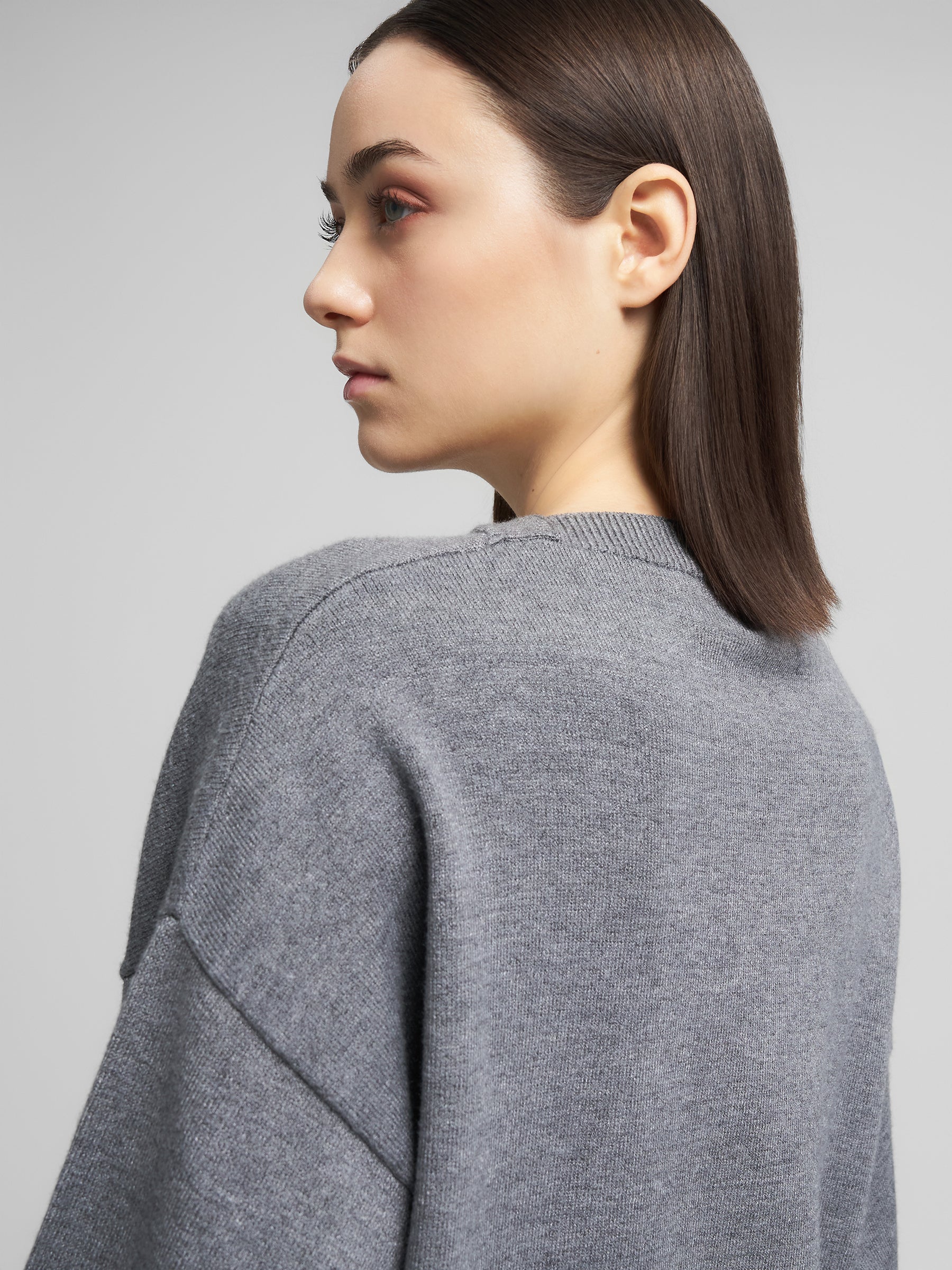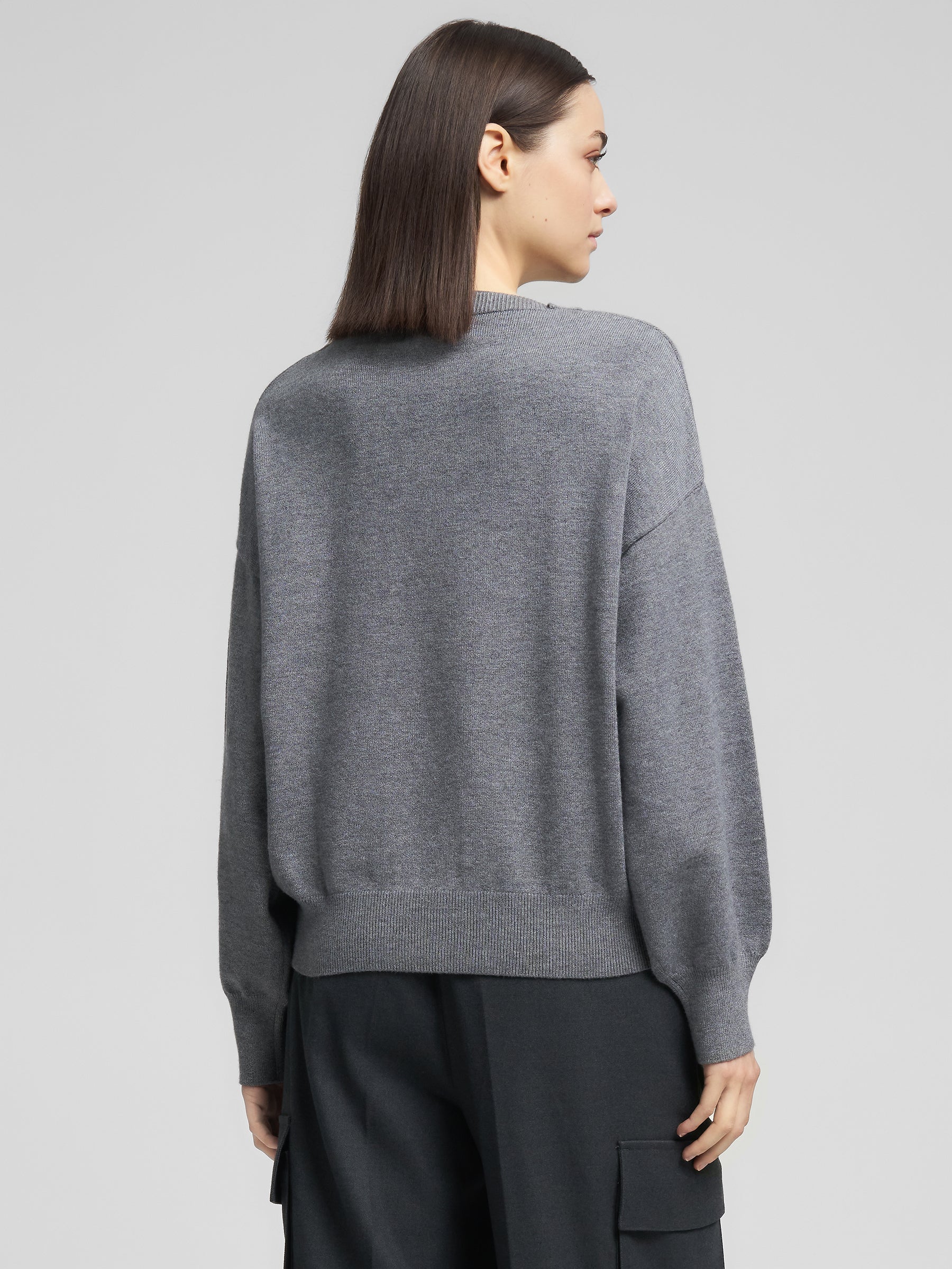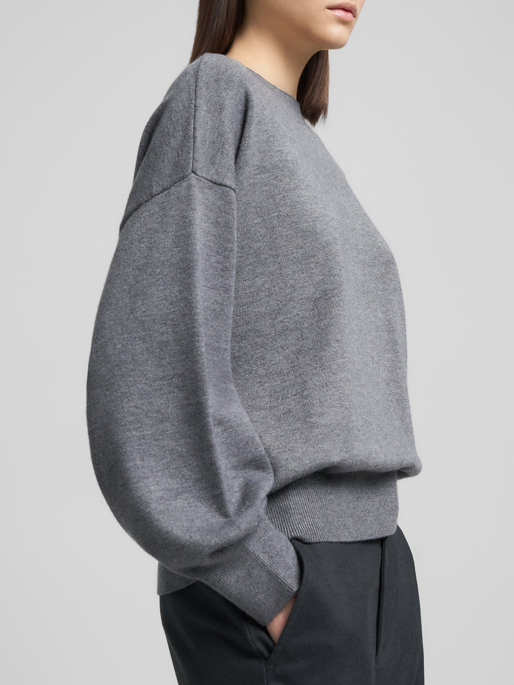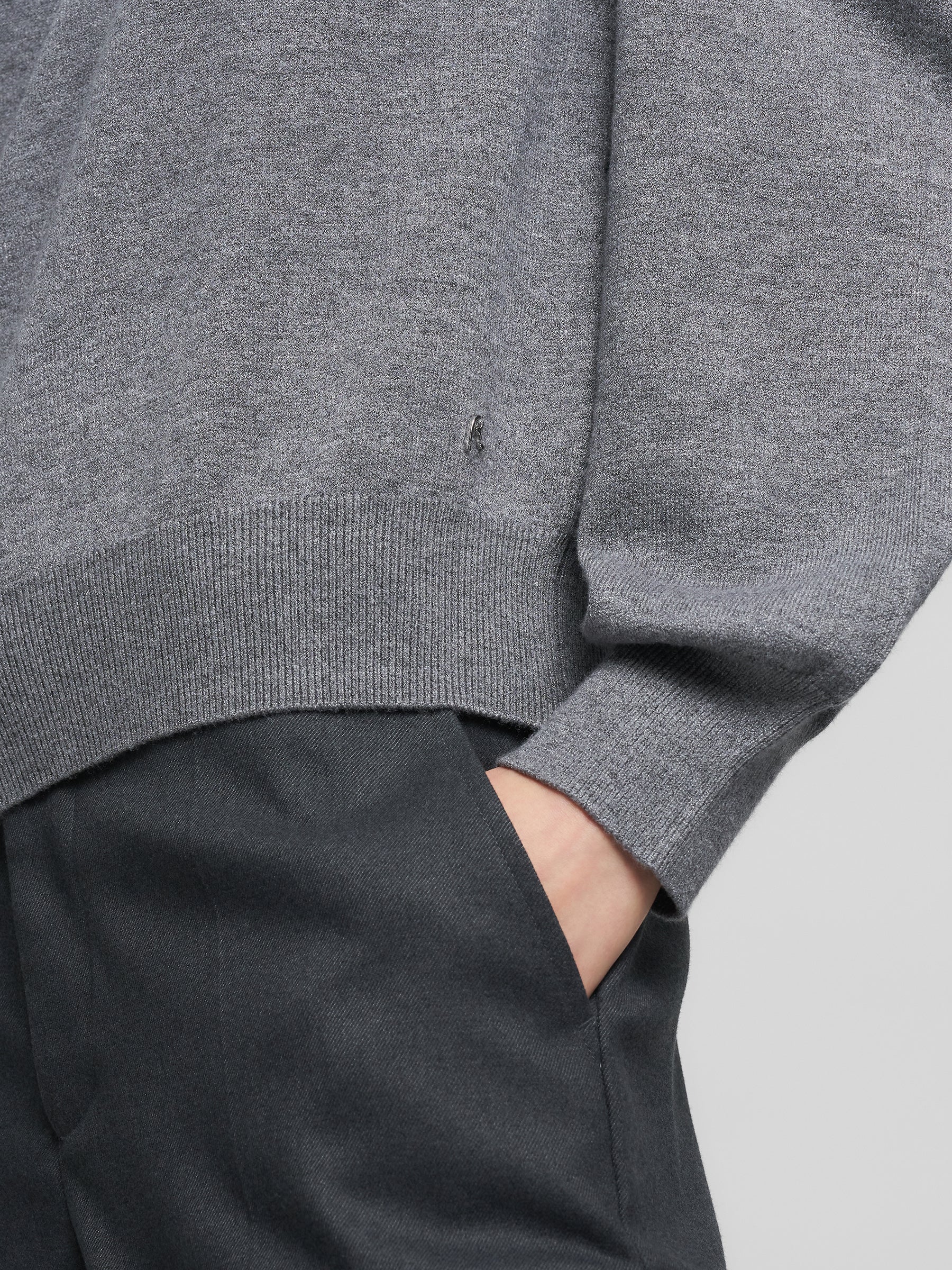 DK3901.000.G23372 Megztinis ilgomis rankovėmis ir apvaliu kaklu. Su "R" raidės įsiuvu šone.
