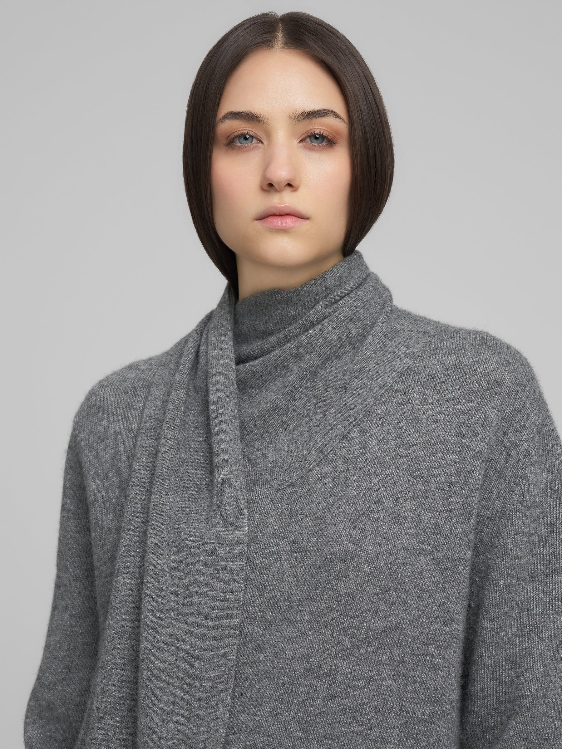 DK3923.000.G22726 Megztinis ilgomis rankovėmis su šaliko detale.