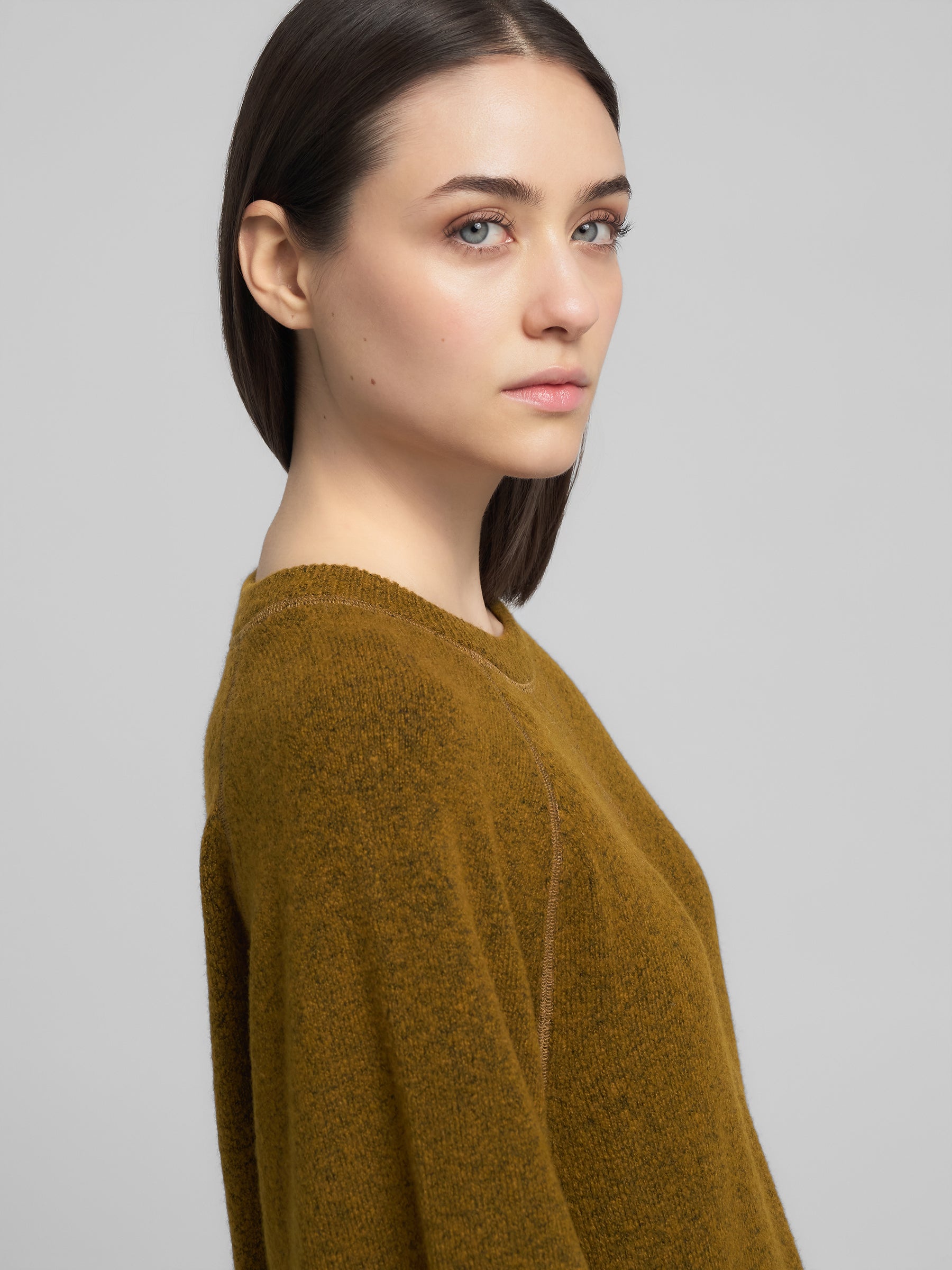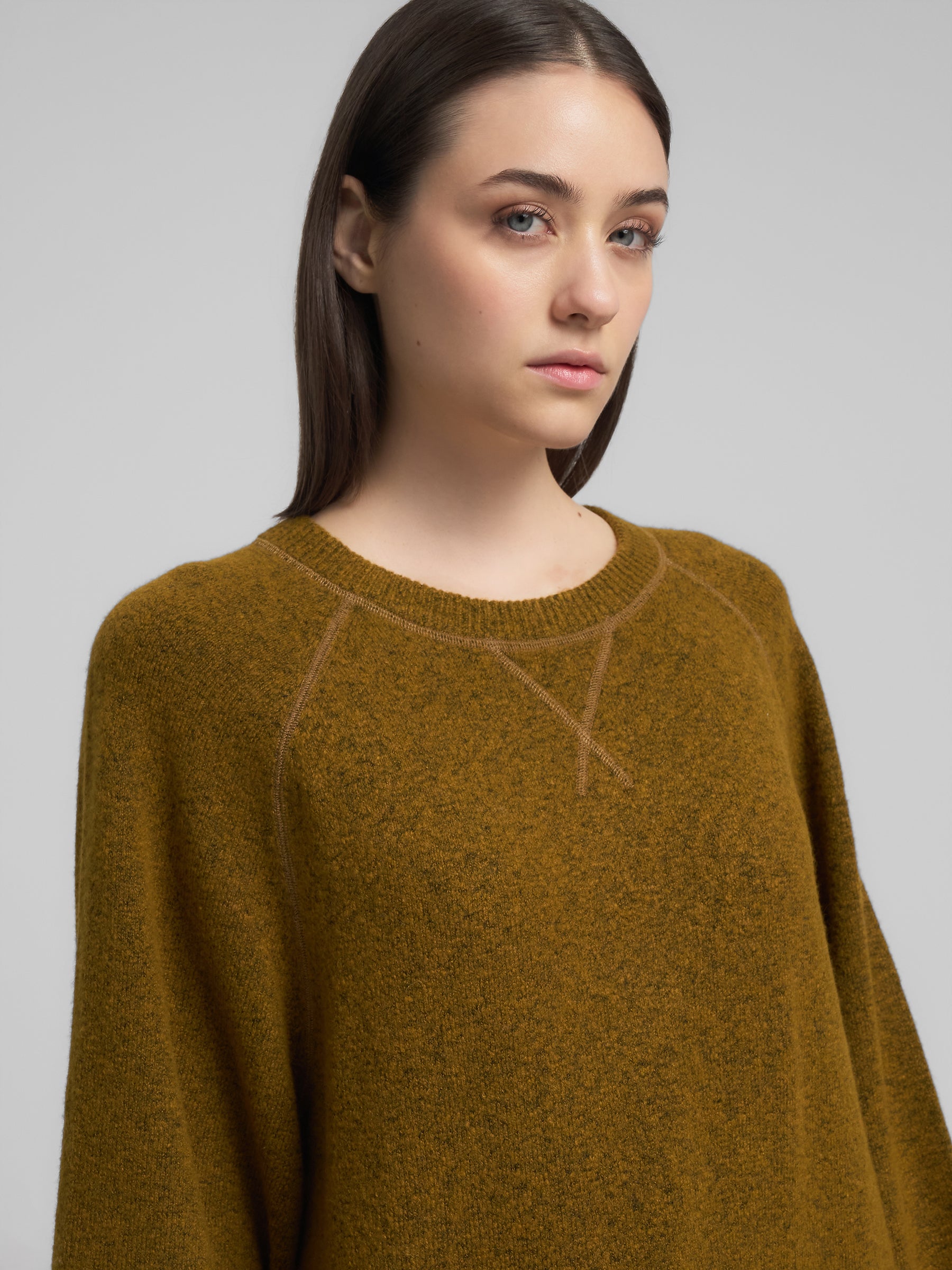 DK3920.000.G23910 Megztinis ilgomis rankovėmis ir apvaliu kaklu. Su "R" raidės įsiuvu šone.