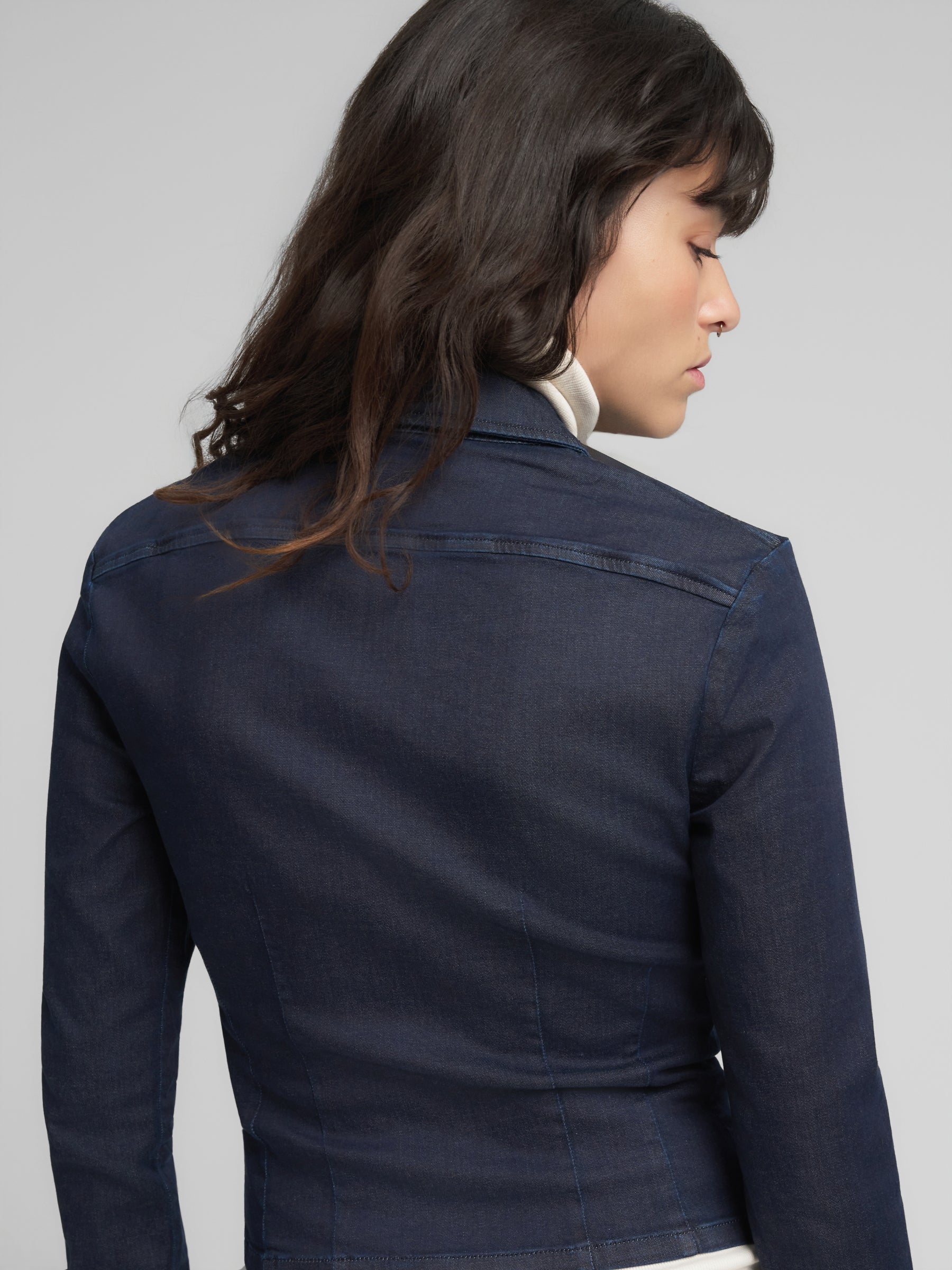 W2416 .000.821 93C Aptemptas žaketas ilgomis rankovėmis su spaudėmis rankovių galuose. Užsegimas užtrauktuku.