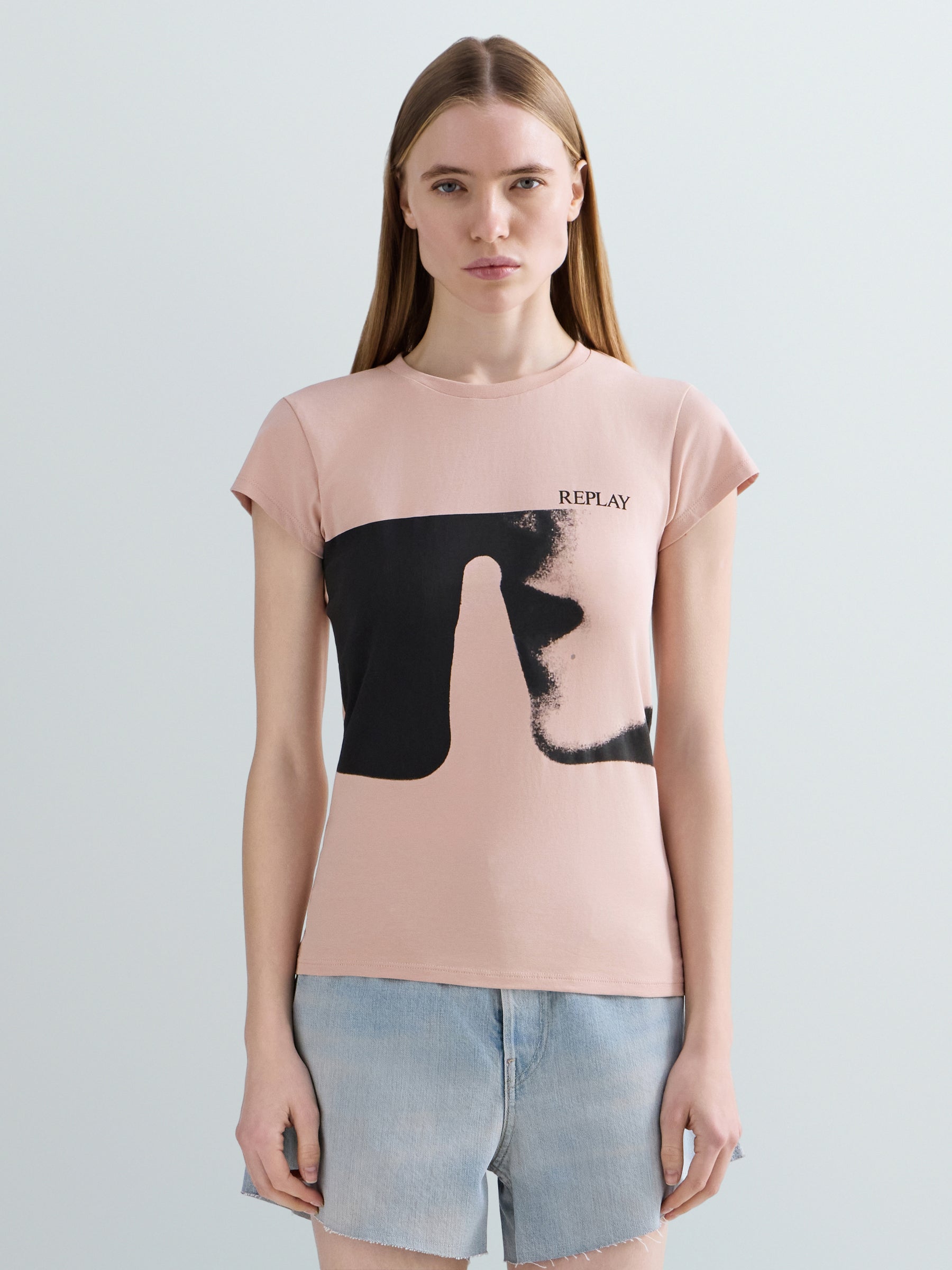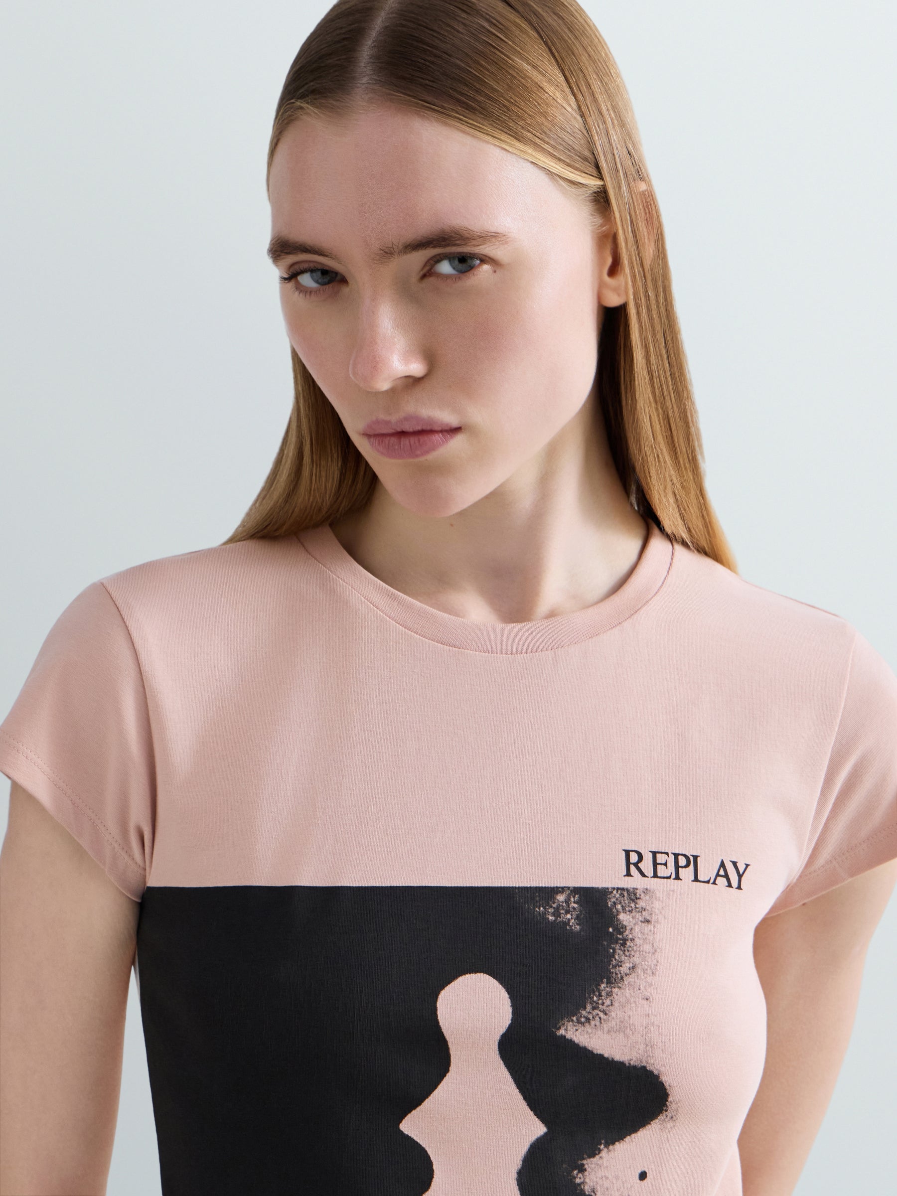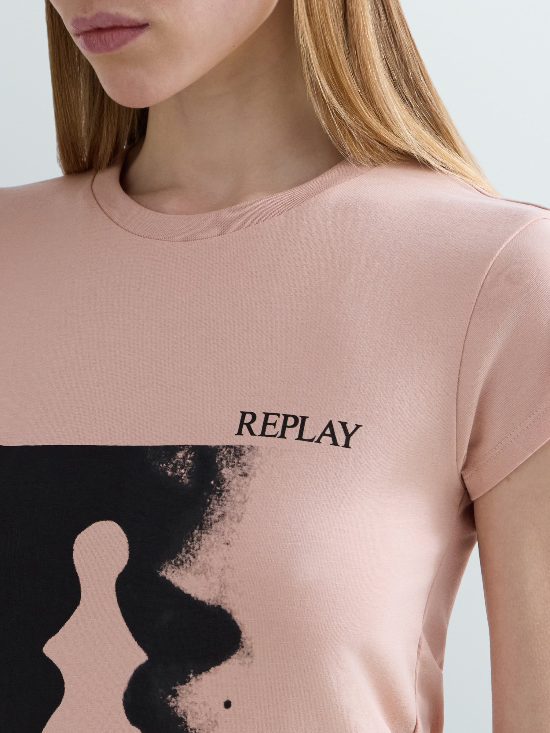 W3397E.000.23993 Marškinėliai trumpomis rankovėmis ir apvaliu kaklu su "REPLAY" spaudu priekyje.