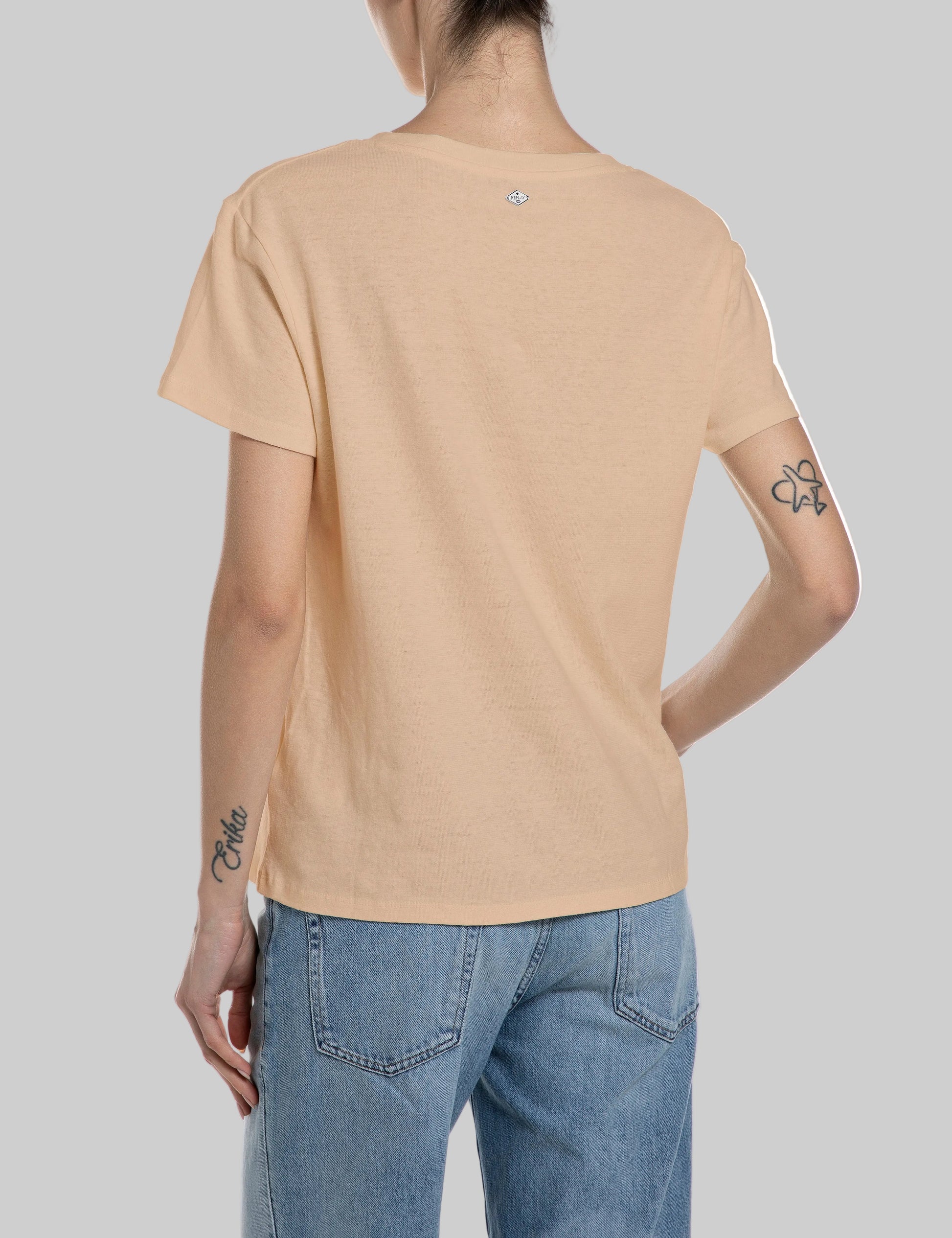 W3084H.000.24004 Marškinėliai trumpomis rankovės su "V" formos iškirpte. "REPLAY" metalinis įsiuvas nugaroje.