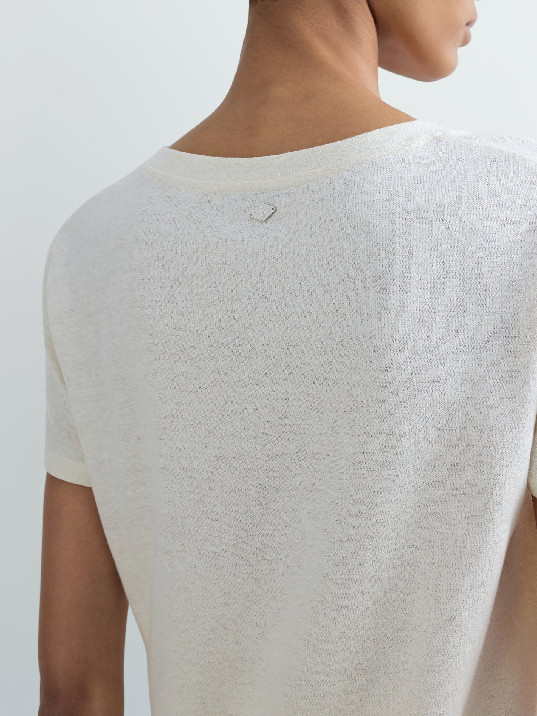 W3084H.000.24004 Marškinėliai trumpomis rankovės su "V" formos iškirpte. "REPLAY" metalinis įsiuvas nugaroje.