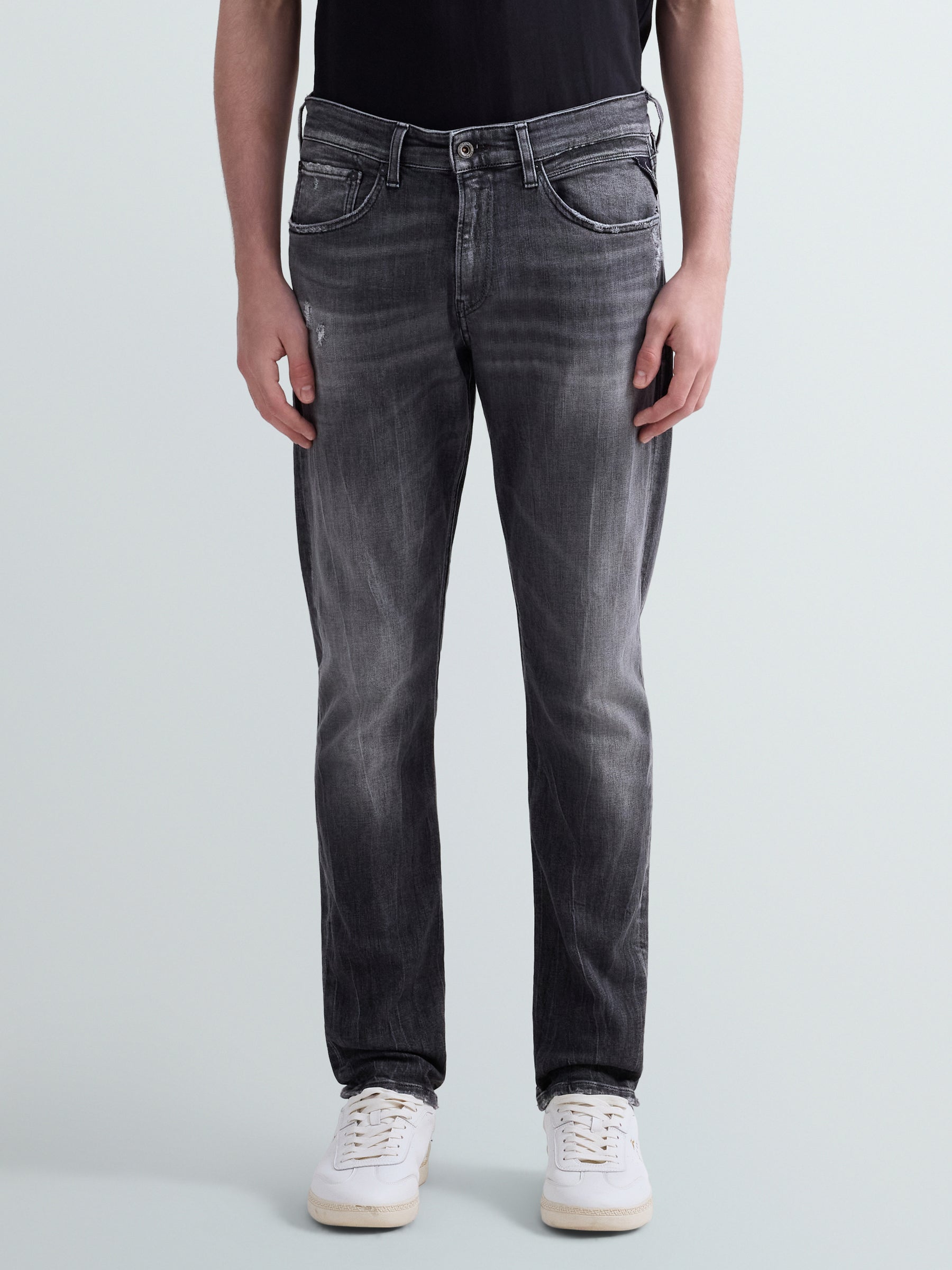 M1051Q.000.199 110 Aptempti džinsai su dviem kišenėmis priekyje ir nugaroje. Užsegimas saga ir užtrauktuku.