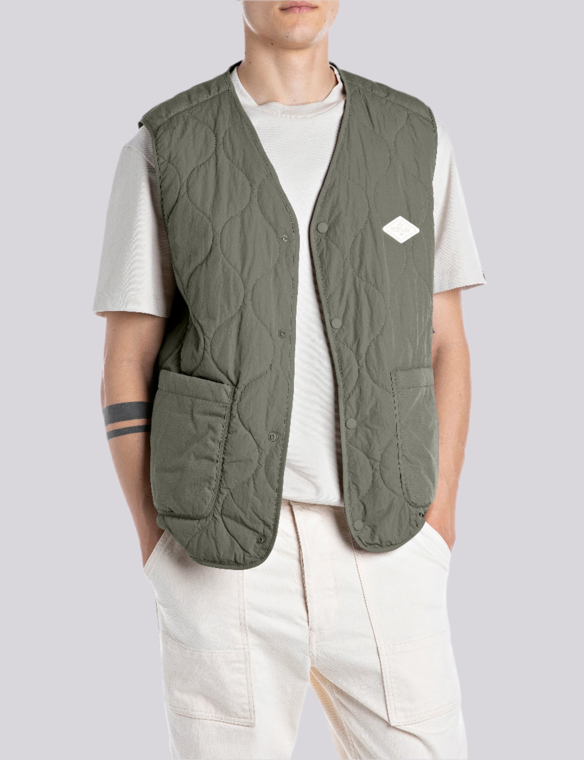 M8451 .000.85124 Liemenė su dviem kišenėmis priekyje ir "REPLAY įsiuvu ant krūtinės. Užsegimas spaudėmis.