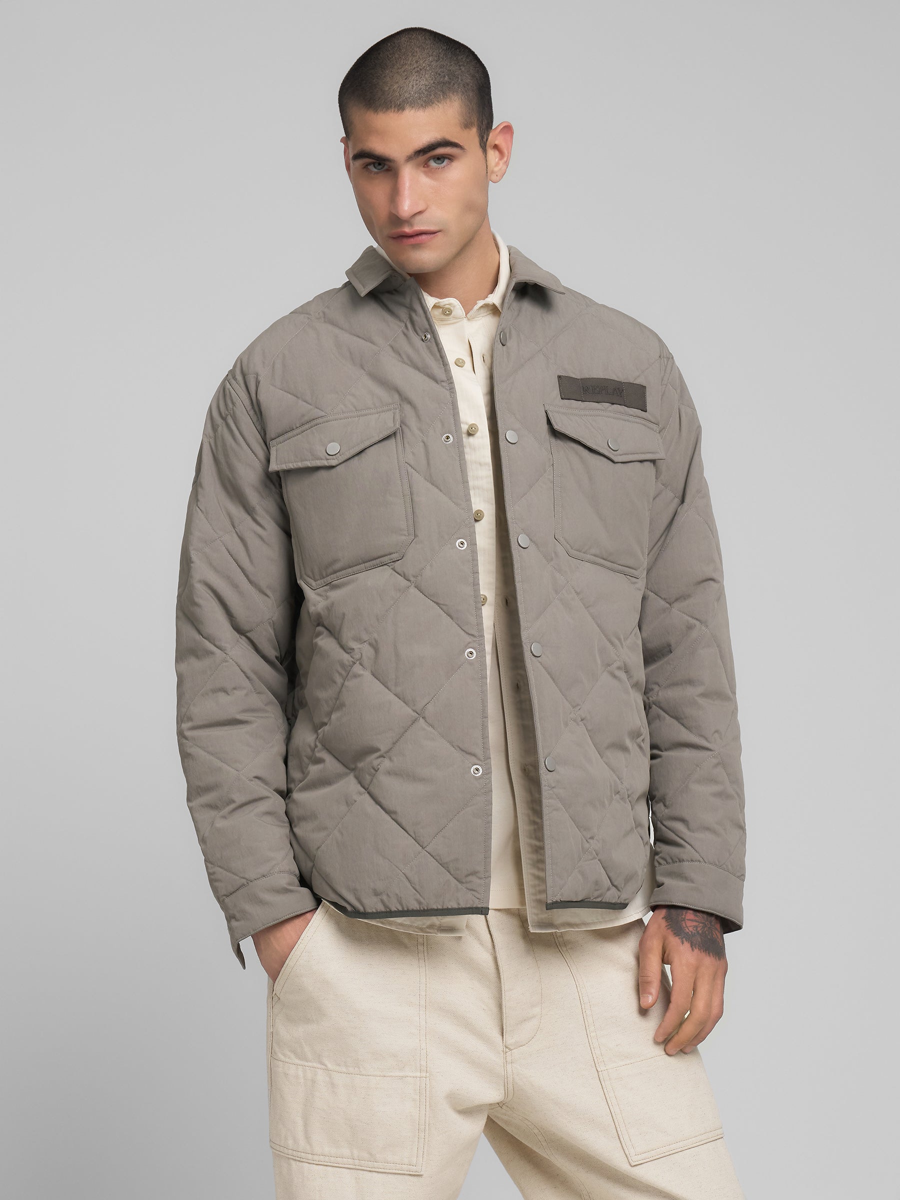 M8491 .000.85342 Plona striukė su dviem kišenėmis ant krūtinės. Su "REPPLAY" įsiuvu priekyje. Užsegimas spaudėmis.