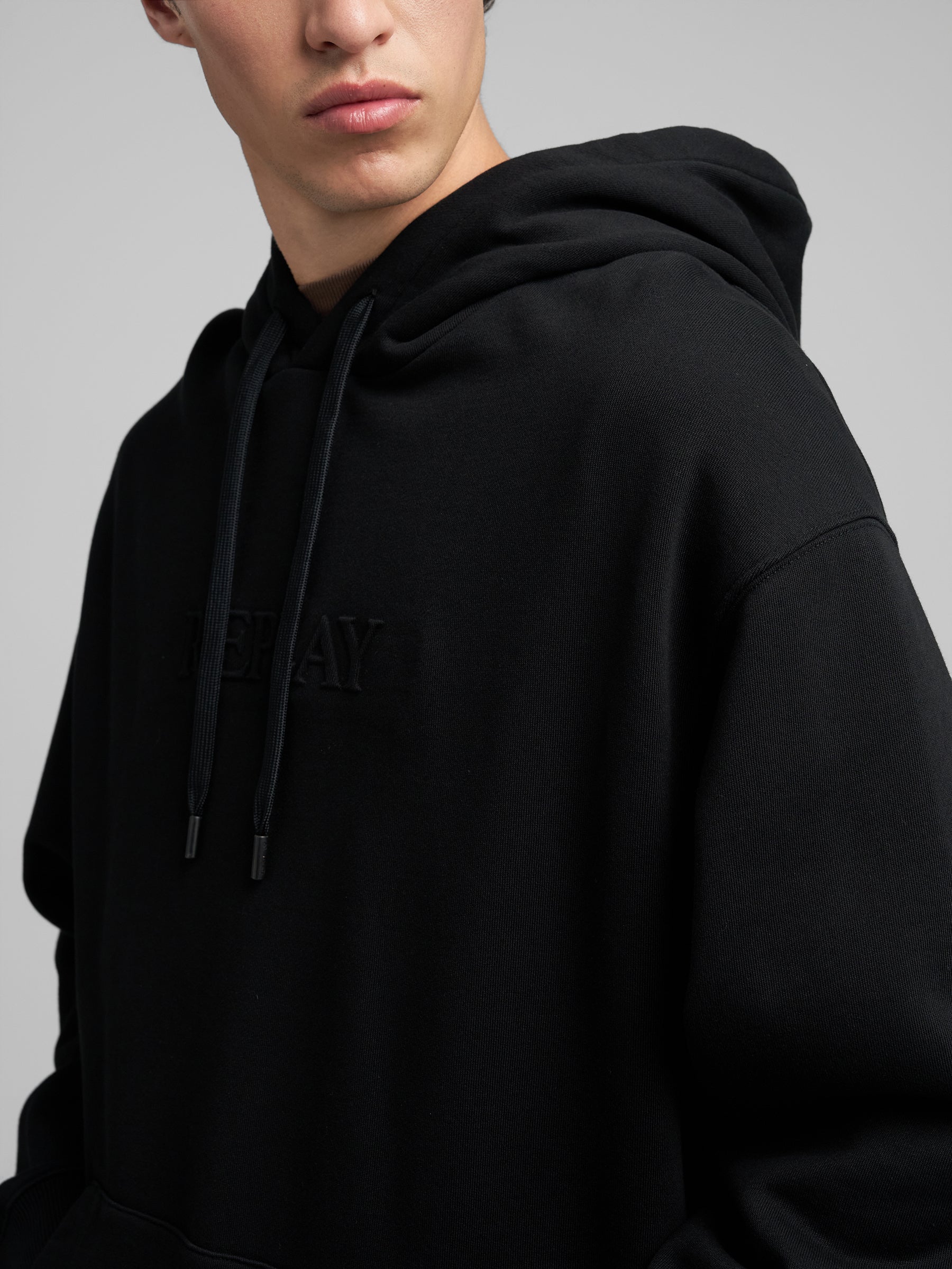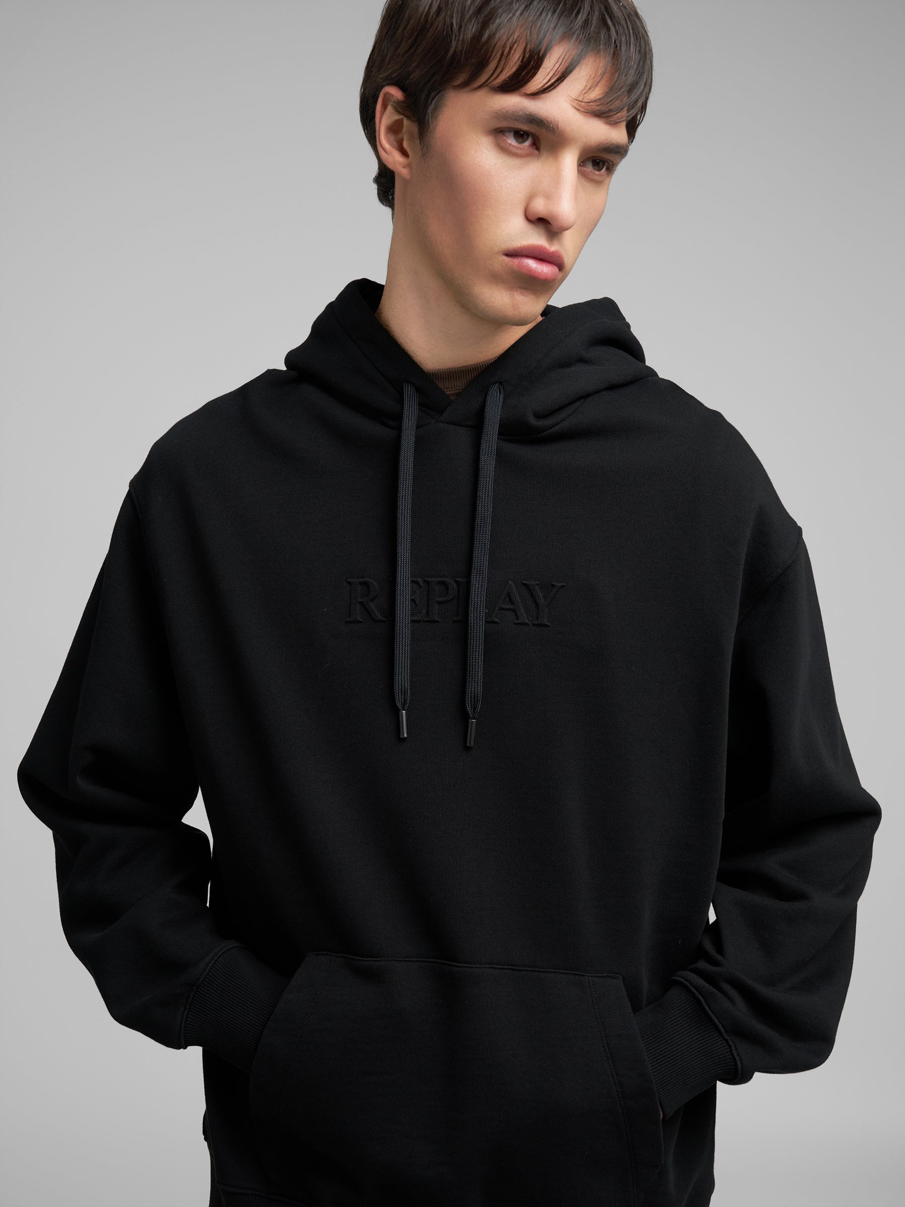 M3183 .000.21842 Džemperis ilgomis rankovėmis ir kapišonu. Su "REPLAY" spaudu ant krūtinės. Didelė kišenė priekyje.