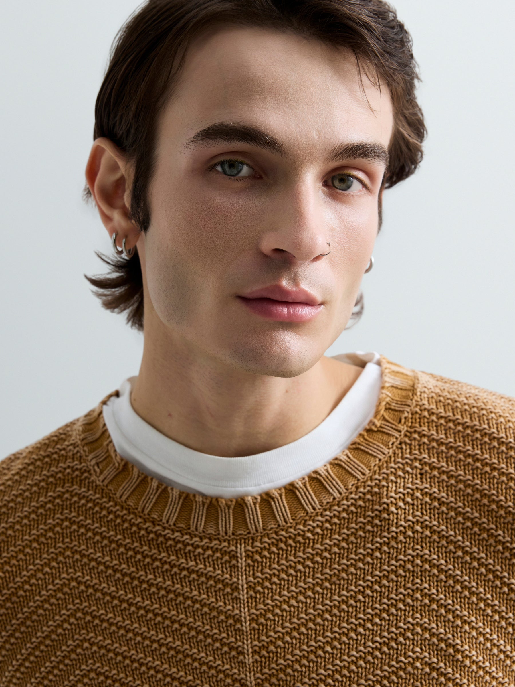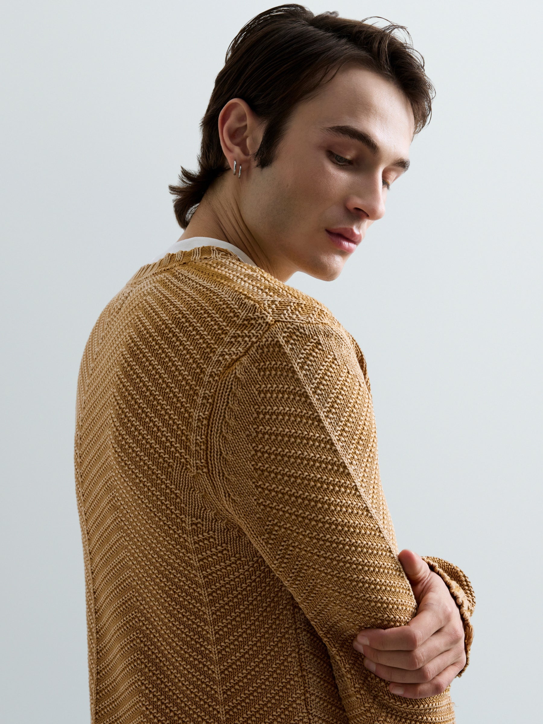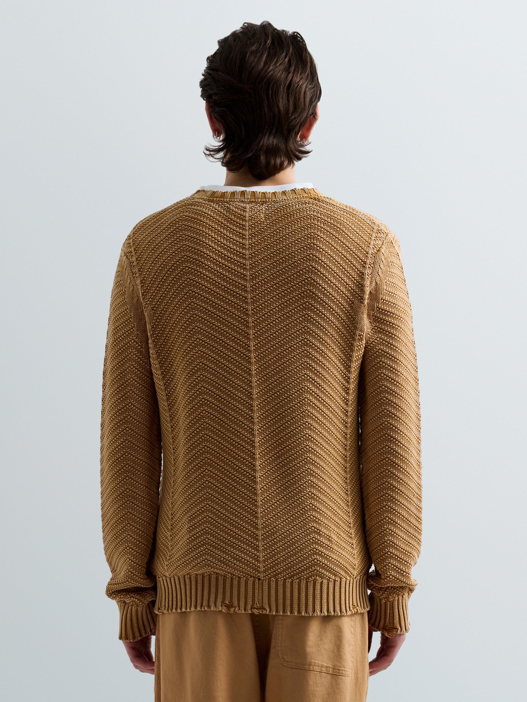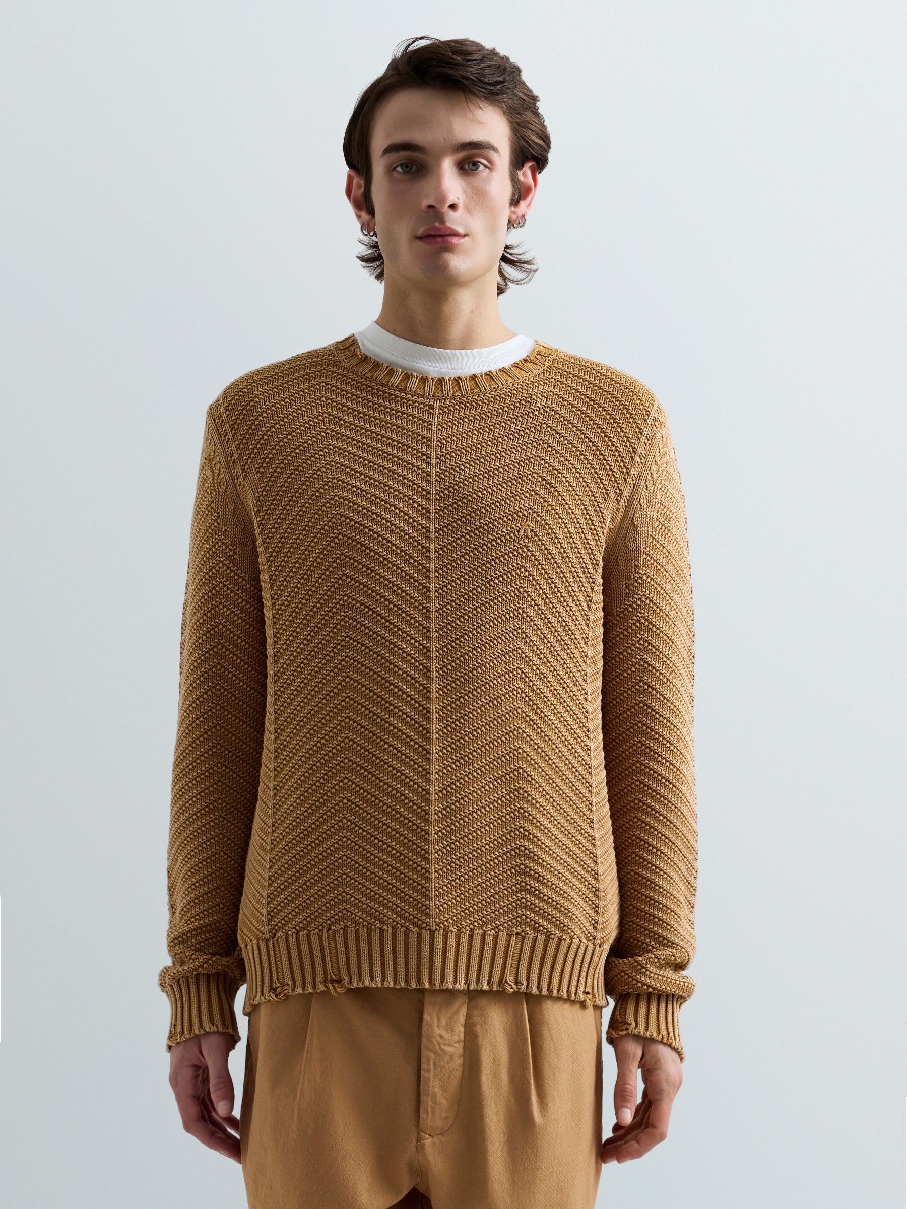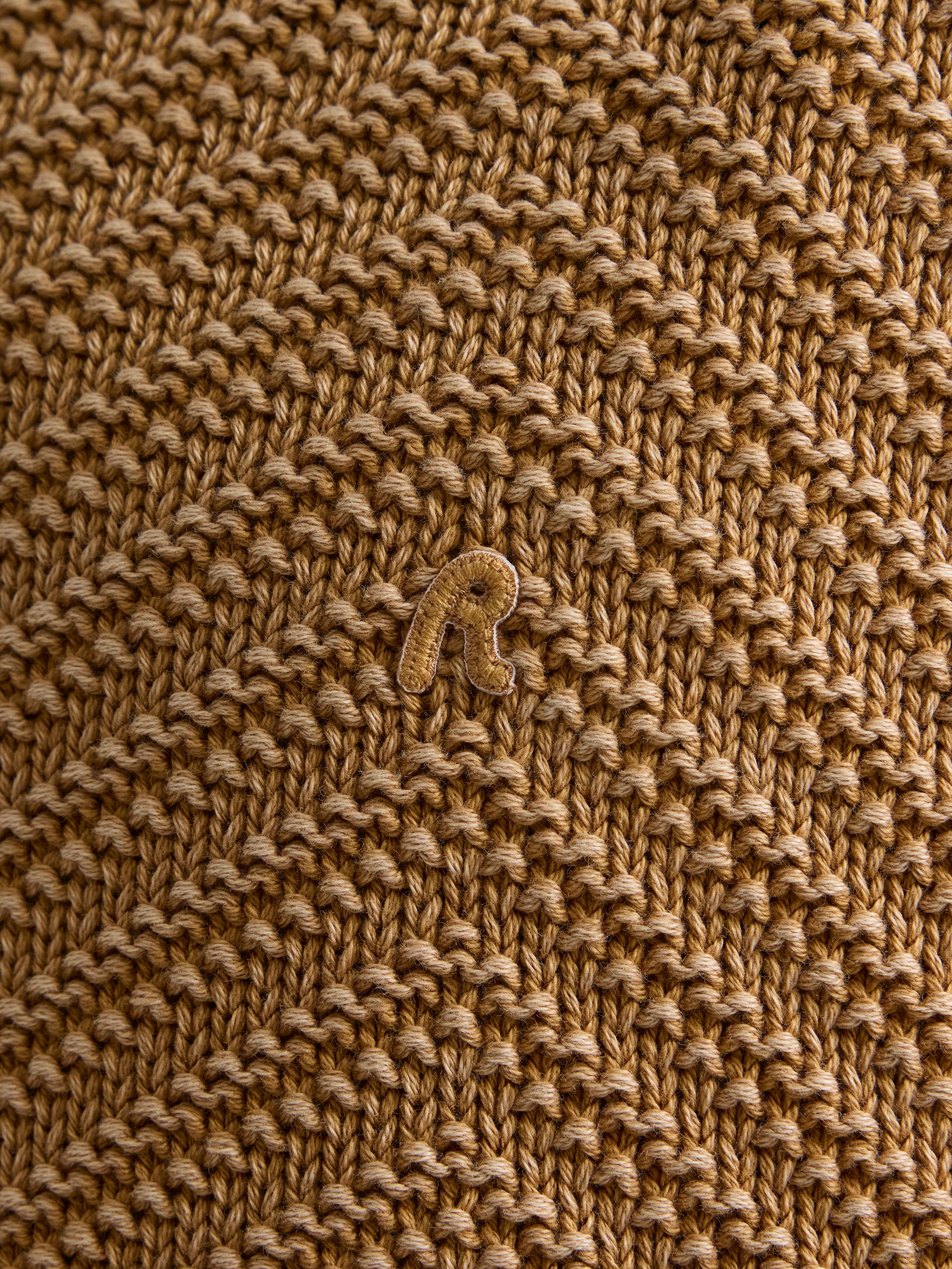 UK5168.000.G21280Q Megztinis ilgomis rankovėmis ir apvaliu kaklu. Su "R" raidės įsiuvu ant krūtinės.