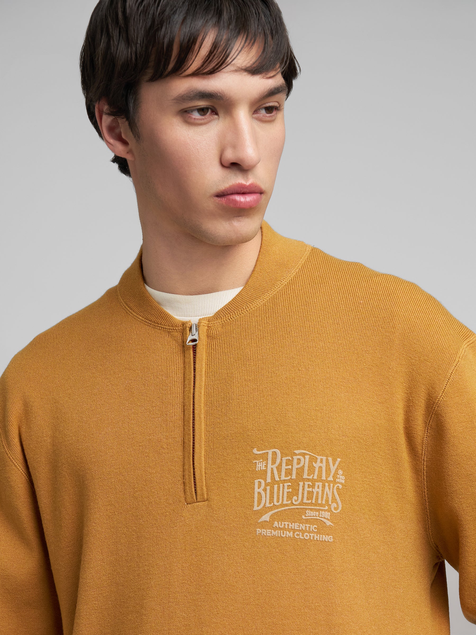 UK4886.000.G23538 Megztinis su kaklo užtrauktuku ir ilgomis rankovėmis. Su "REPLAY" įsiuvu ant krūtinės.
