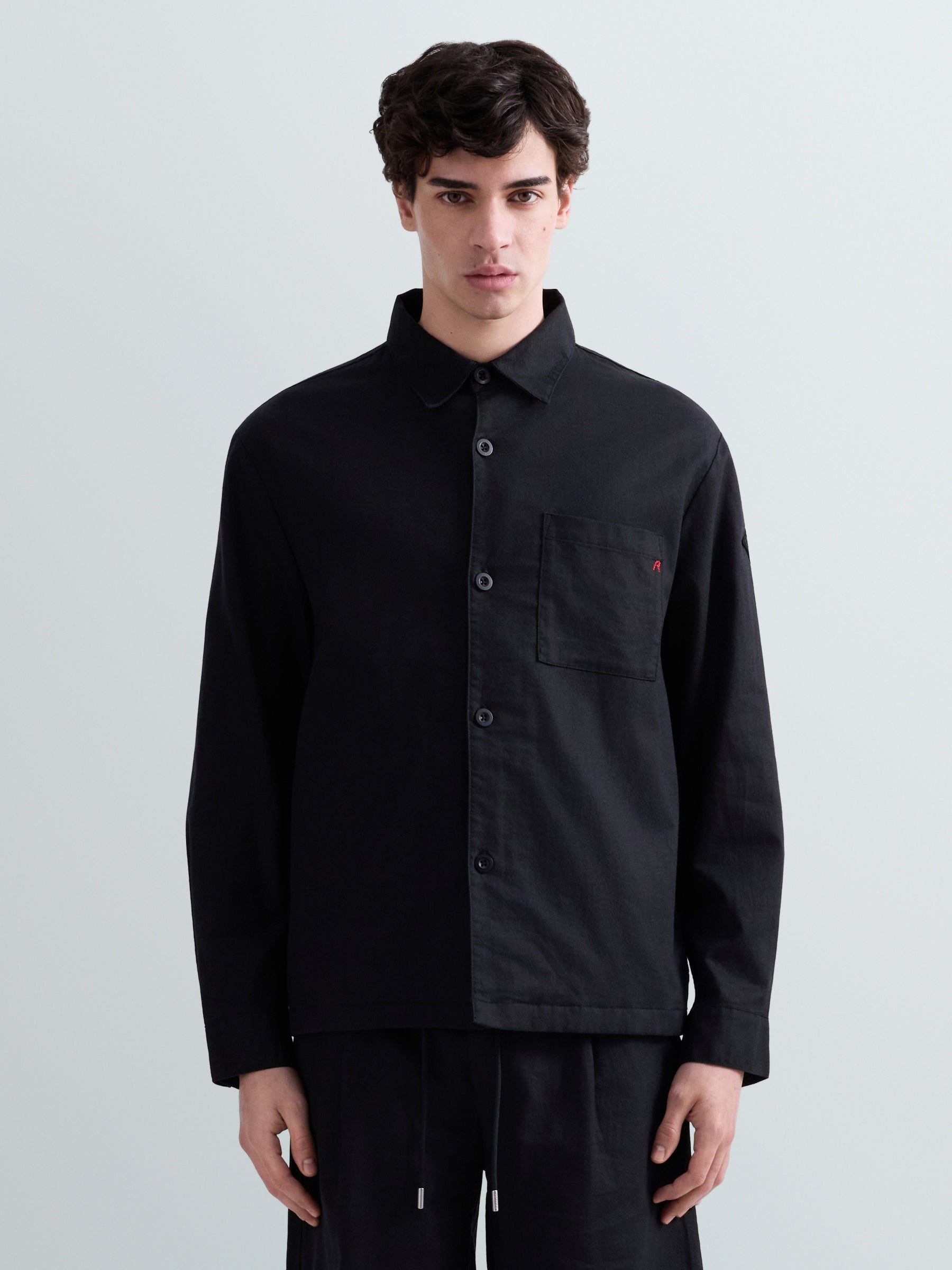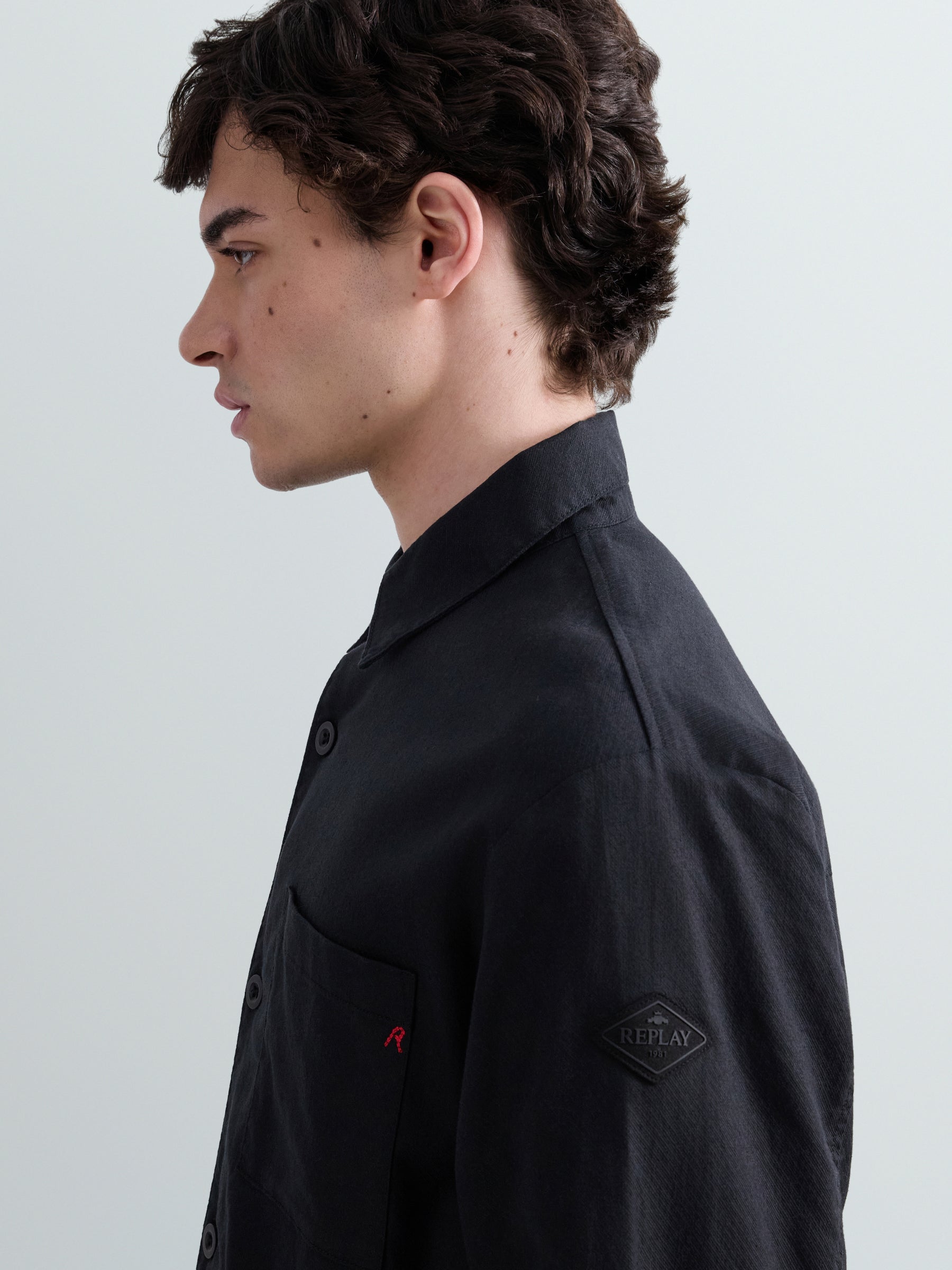 M8528 .000.85500 Švarkas ilgomis rankovėmis ir apvaliu kaklu. Su kišene ant krūtinės ir "R" raidės įsiuvu. "REPLAY" įsiuvas ant rankovės. Užsegimas sagomis.