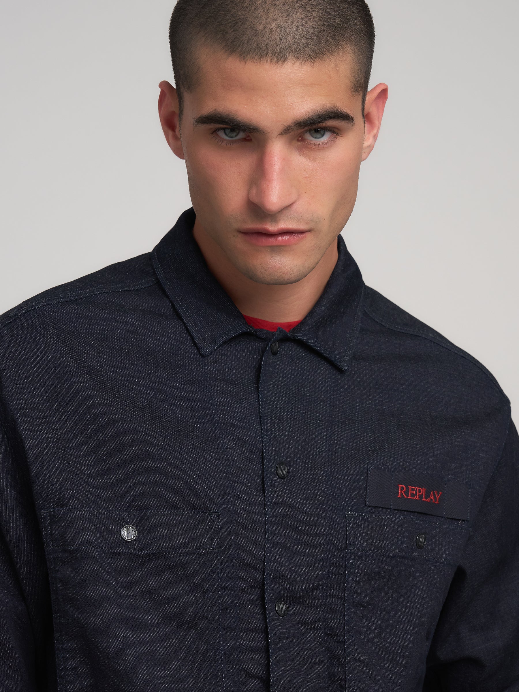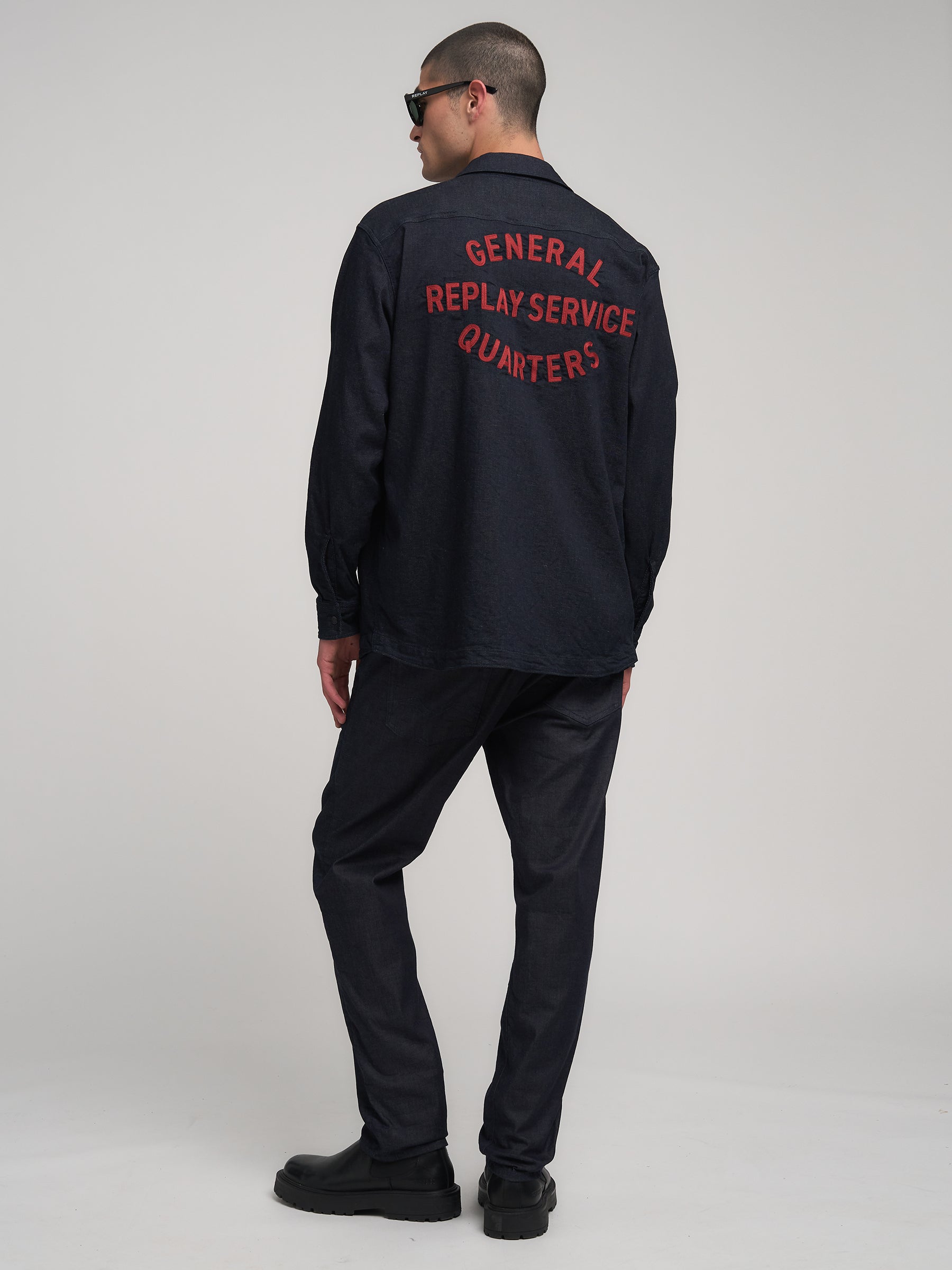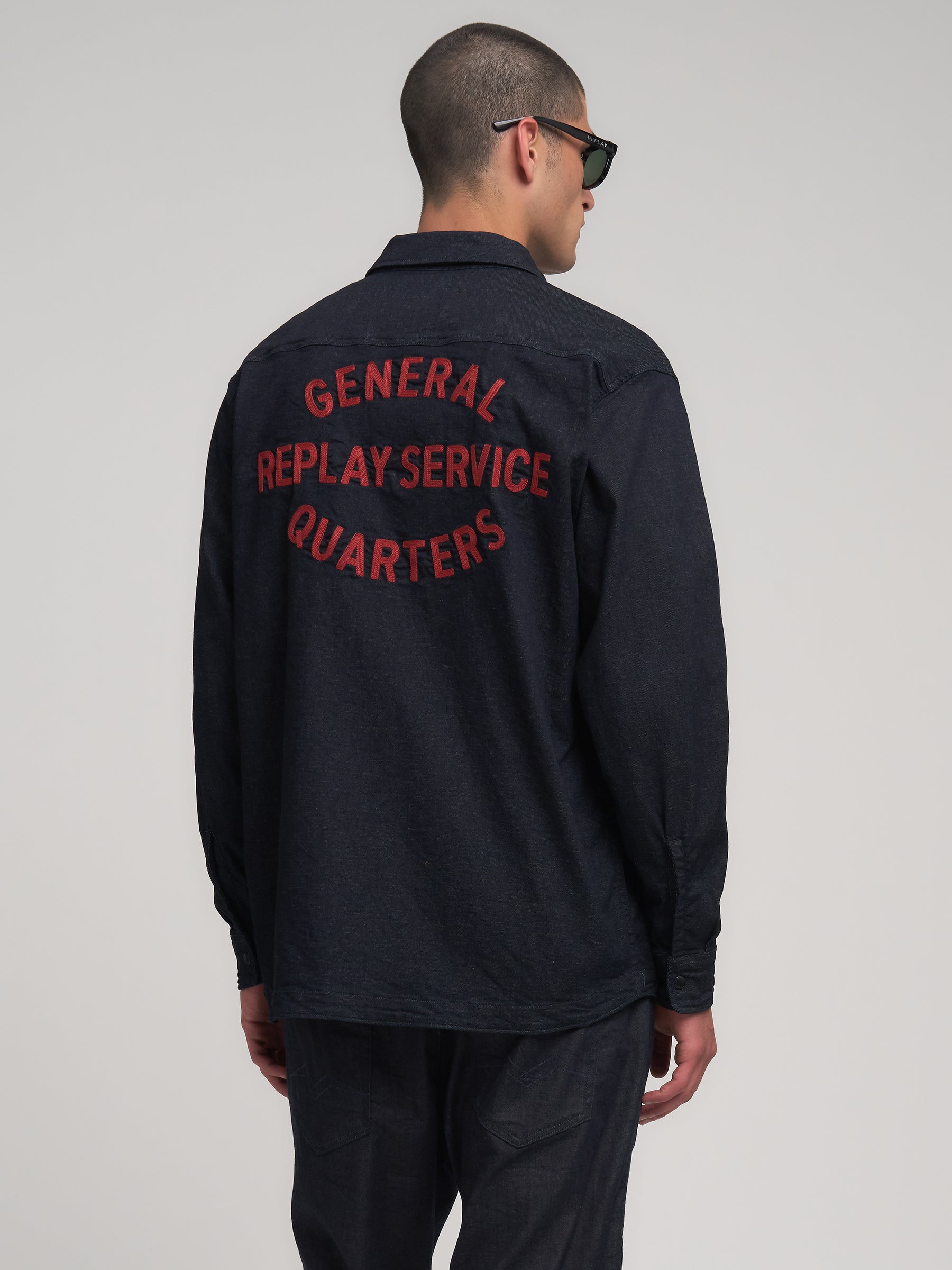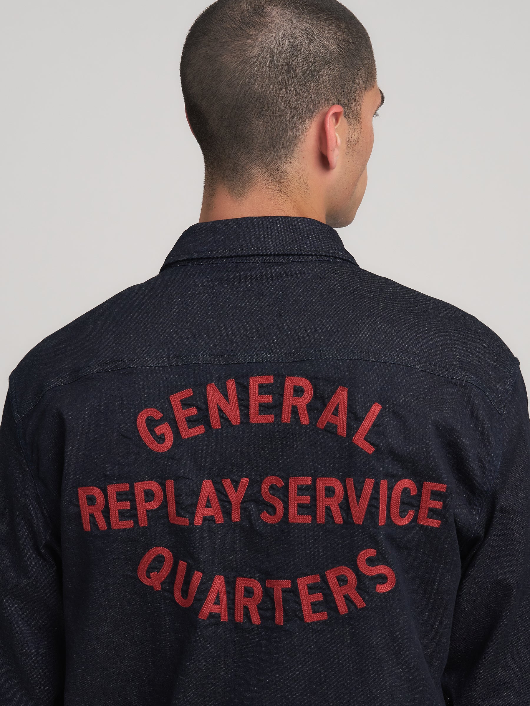 M4145R.000.875 84A Švarkas ilgomis rankovėmis su dviem kišenėmis ant krūtinės ir "REPLAY" įsiuvu. Užsegimas spaudėmis. Ant nugaros siuvinėjimai.