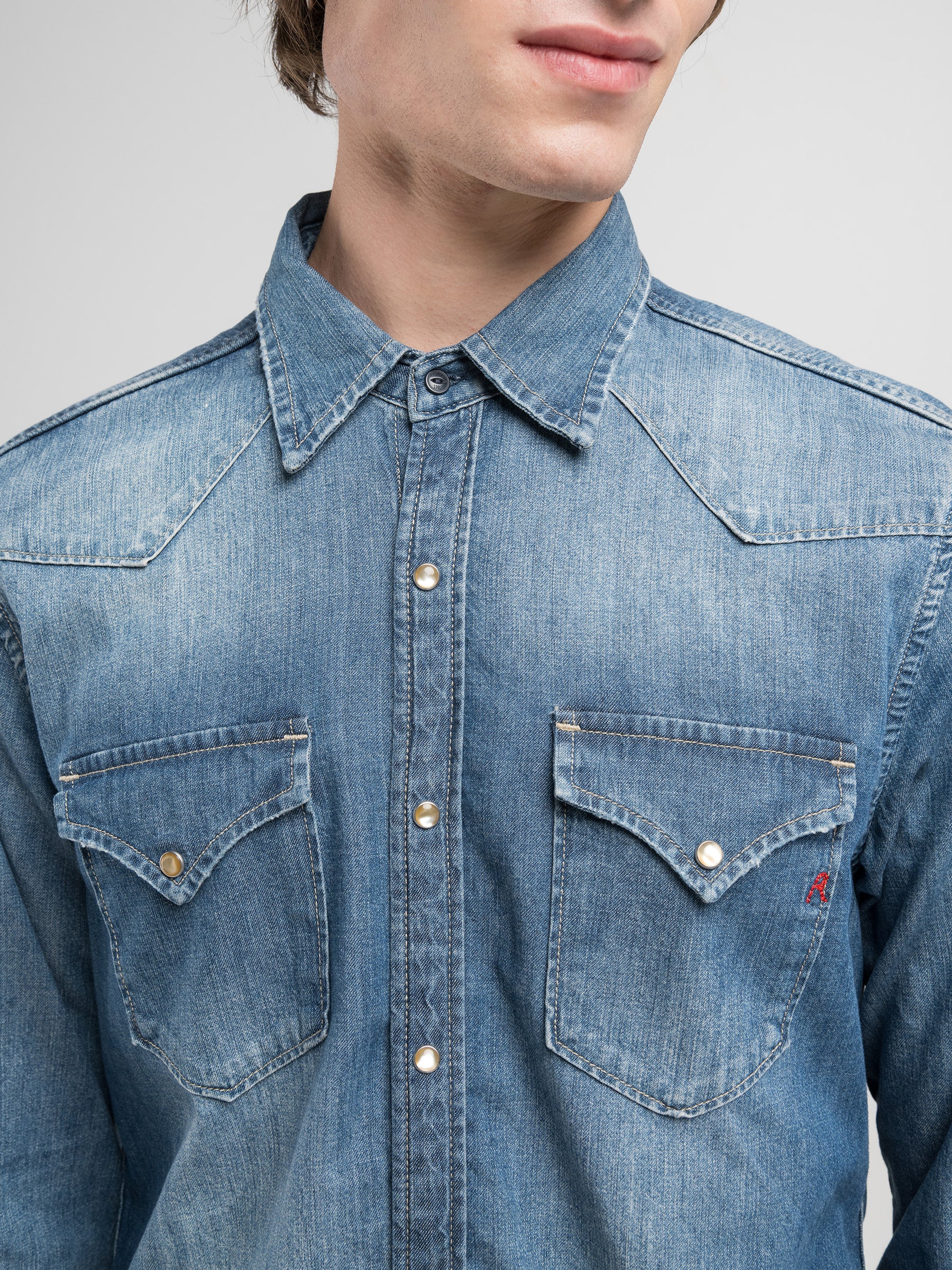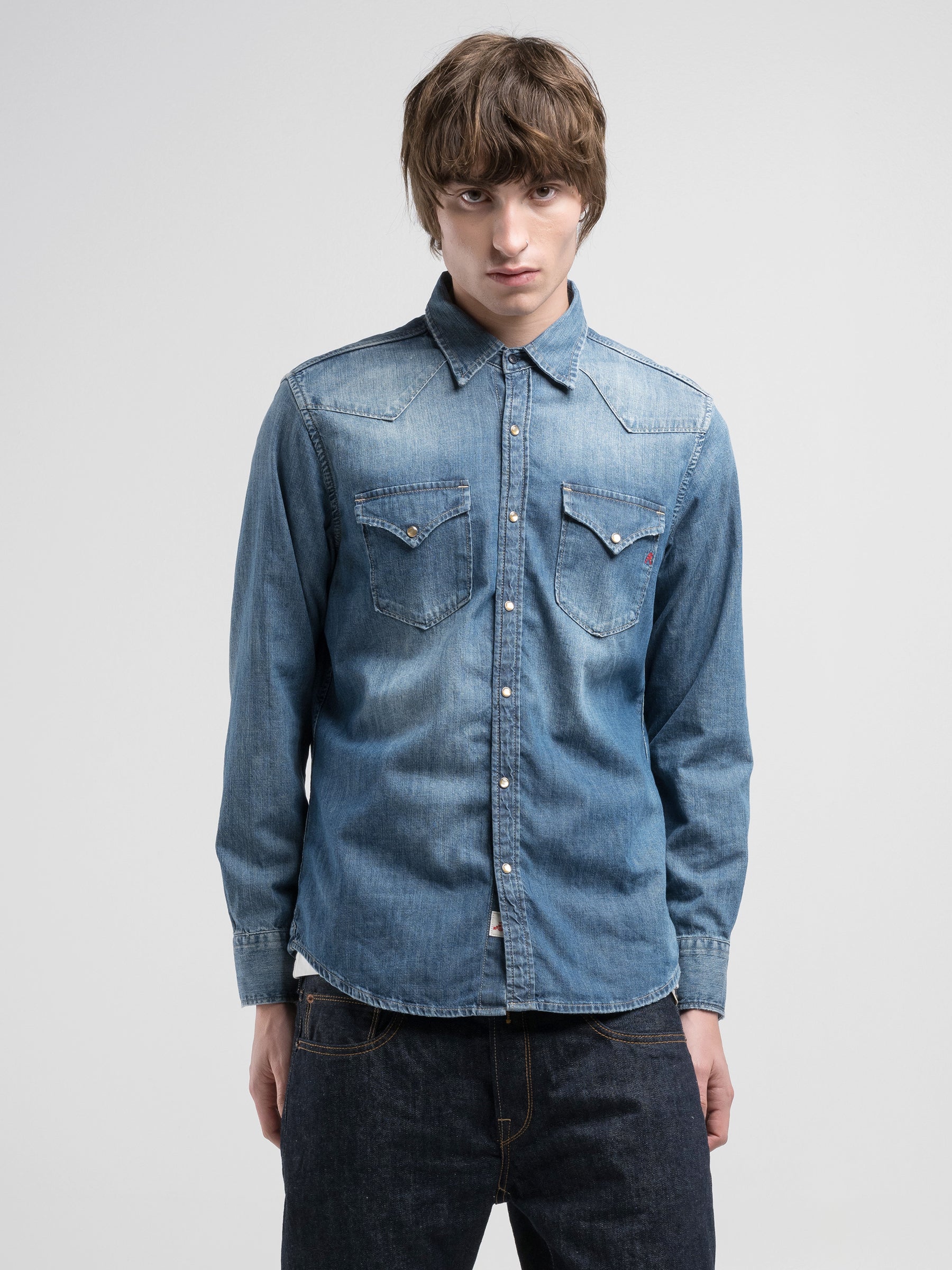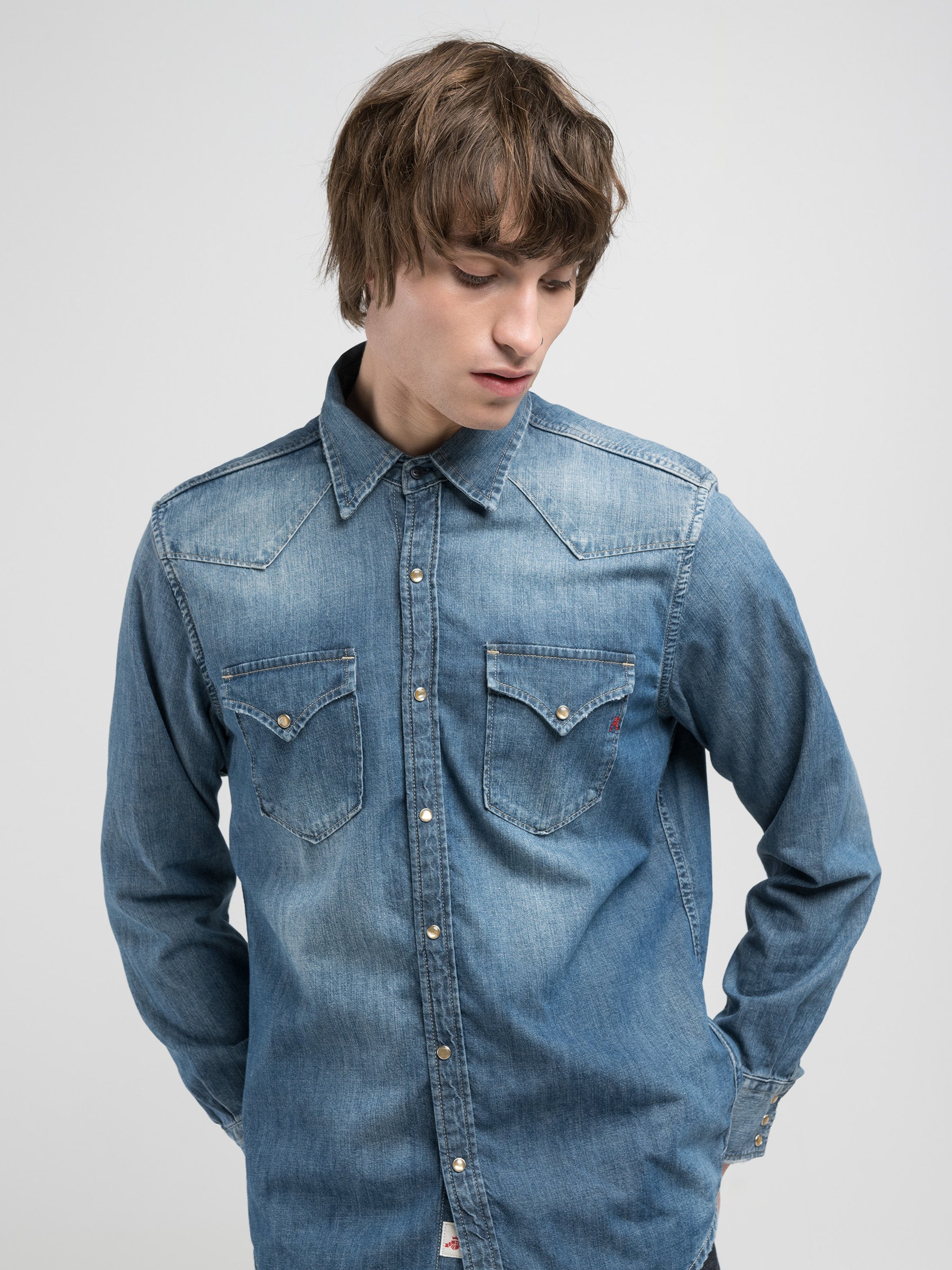 M4981 .000.M2DF43A Marškiniai ilgomis rankovėmis su dviem kišenėmis ant krūtinės. Su "R" raidės įsiuvu. Užsegimas spaudėmis.