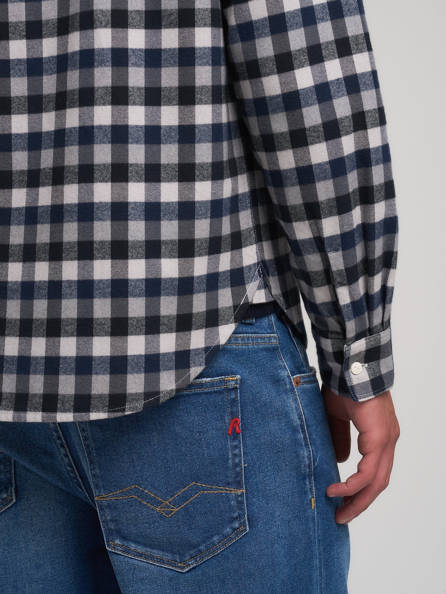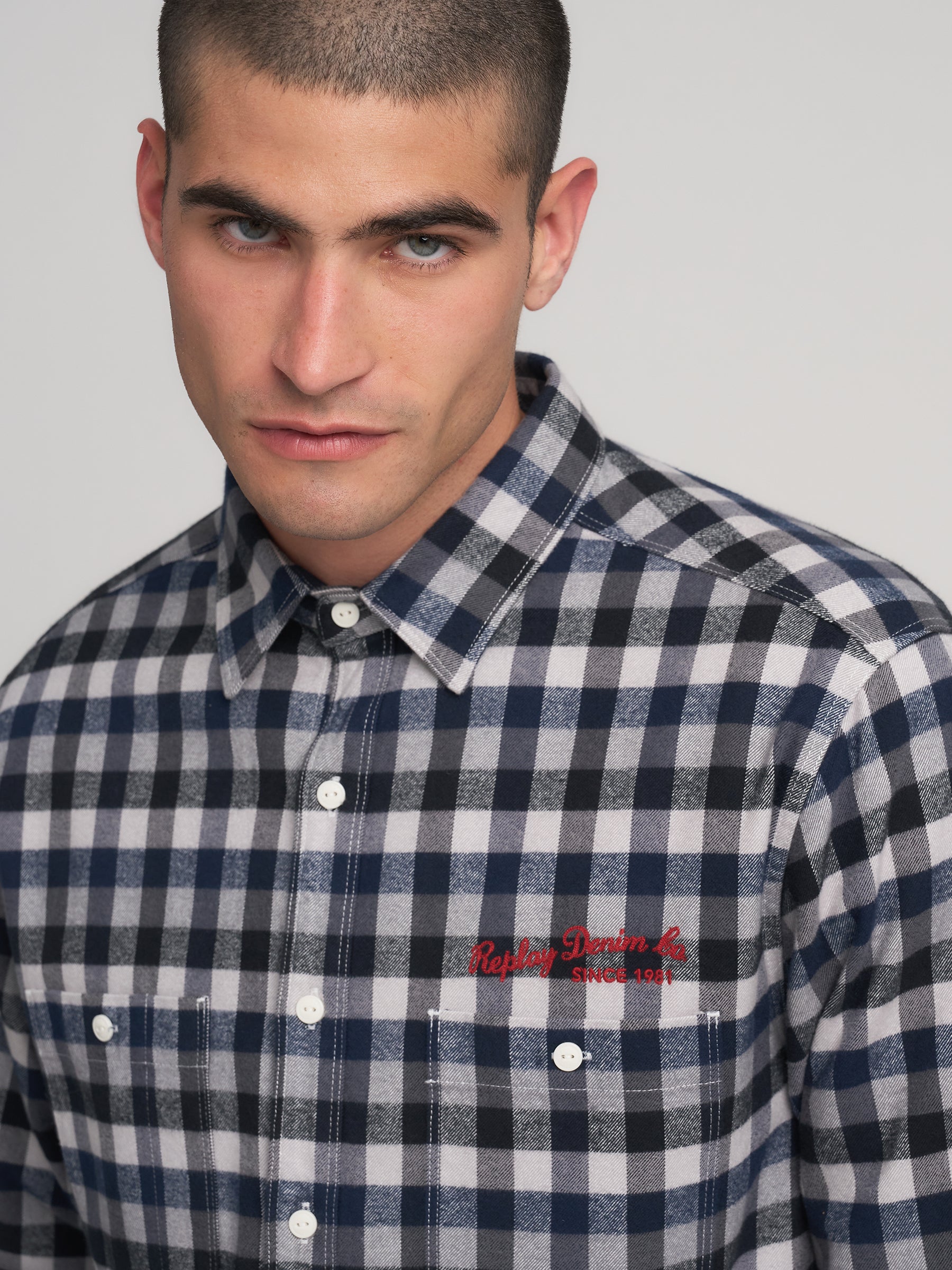 M4150 .000.52824 Marškiniai ilgomis rankovėmis. Su dviem kišenėmis ir "REPLAY" įsiuvu ant krūtinės. Užsegimas sagomis.