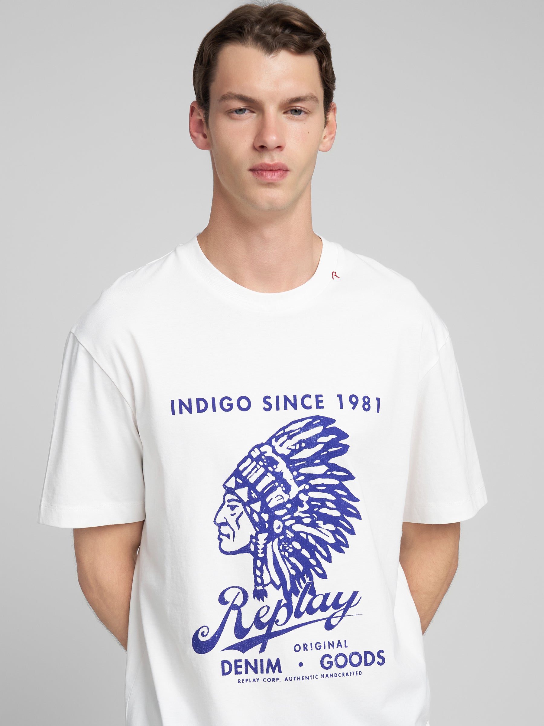 M3277 .000.23608P Marškinėliai trumpomis rankovėmis ir apvaliu kaklu. Su spaudu priekyje.