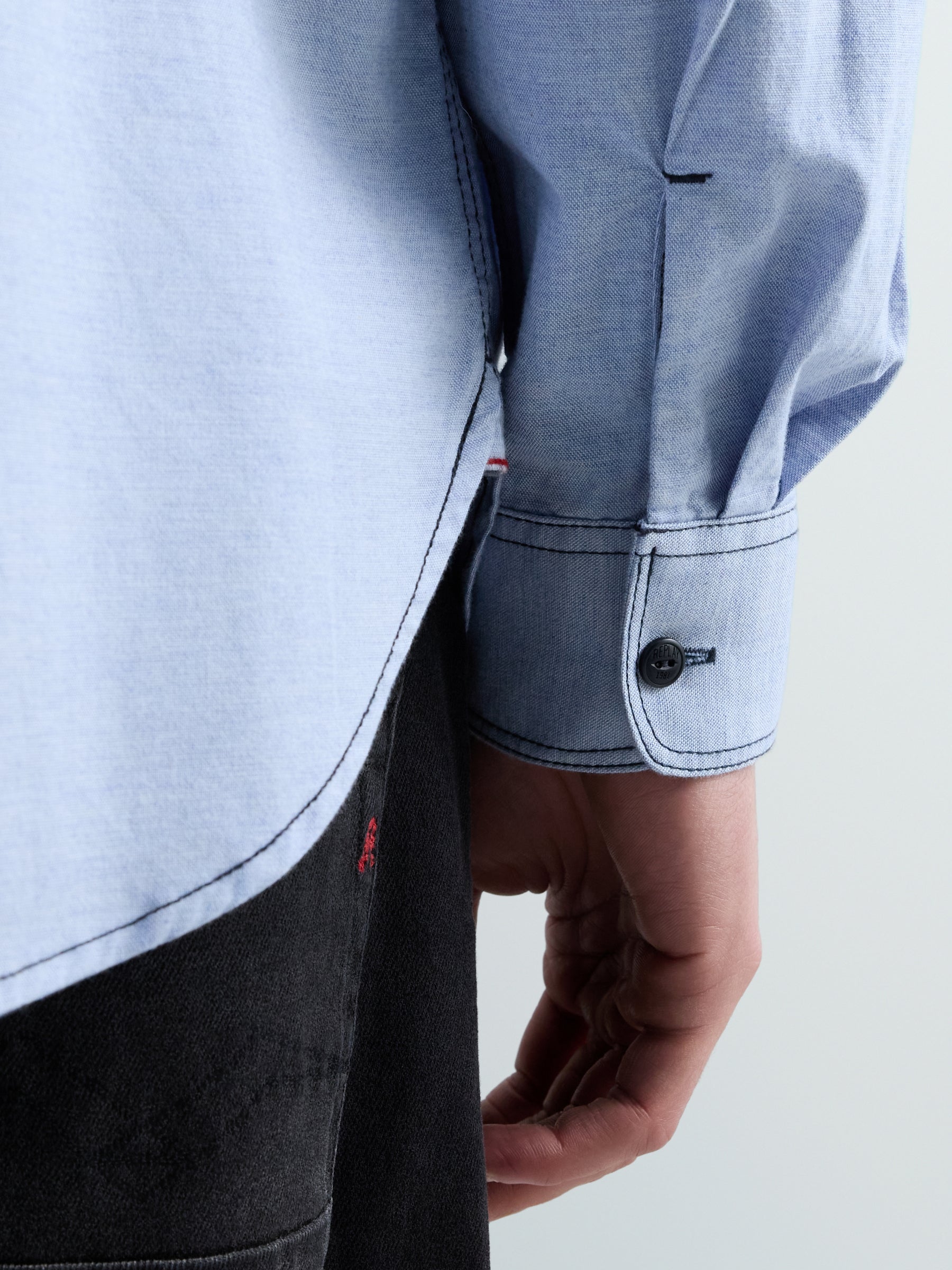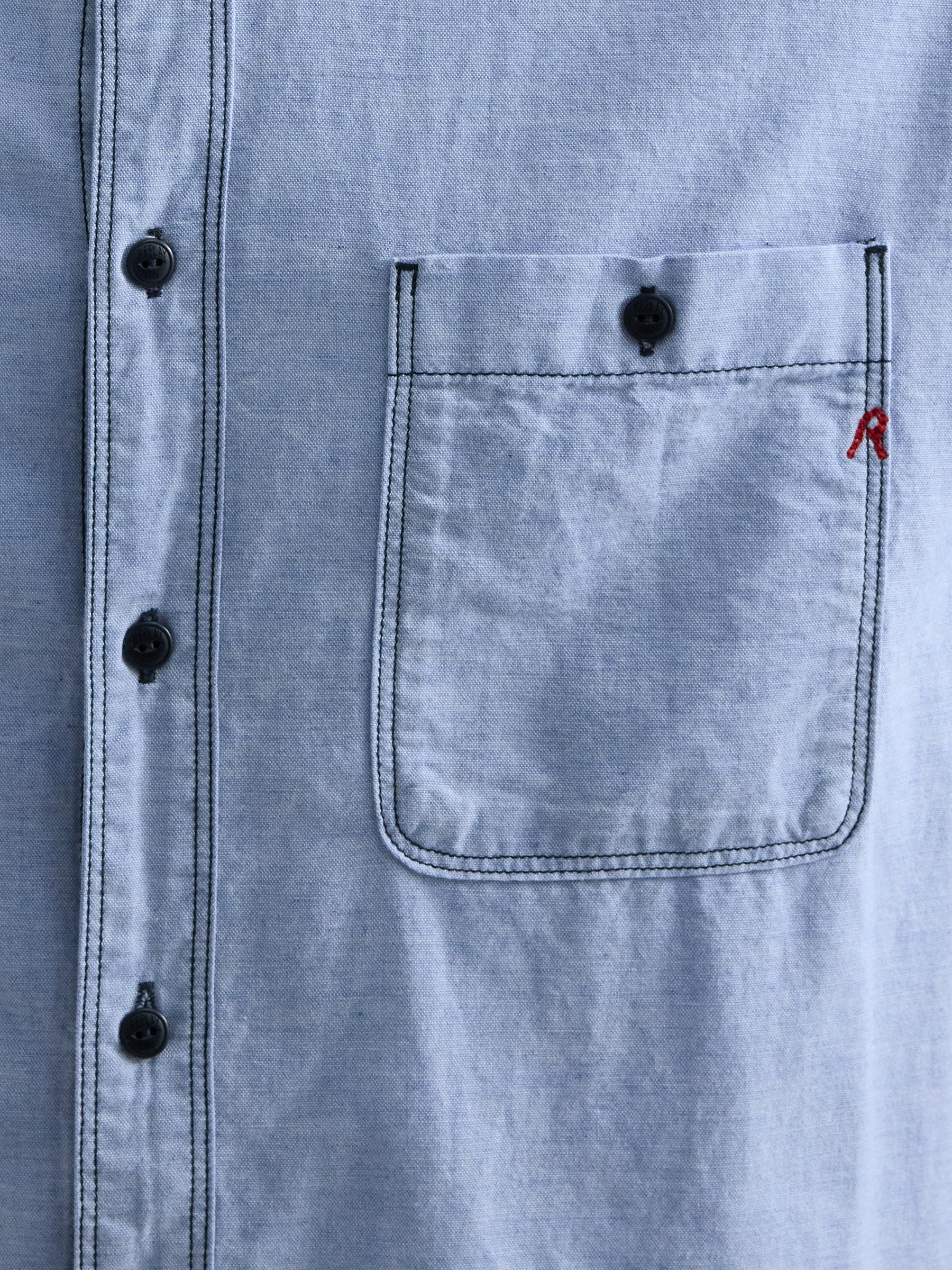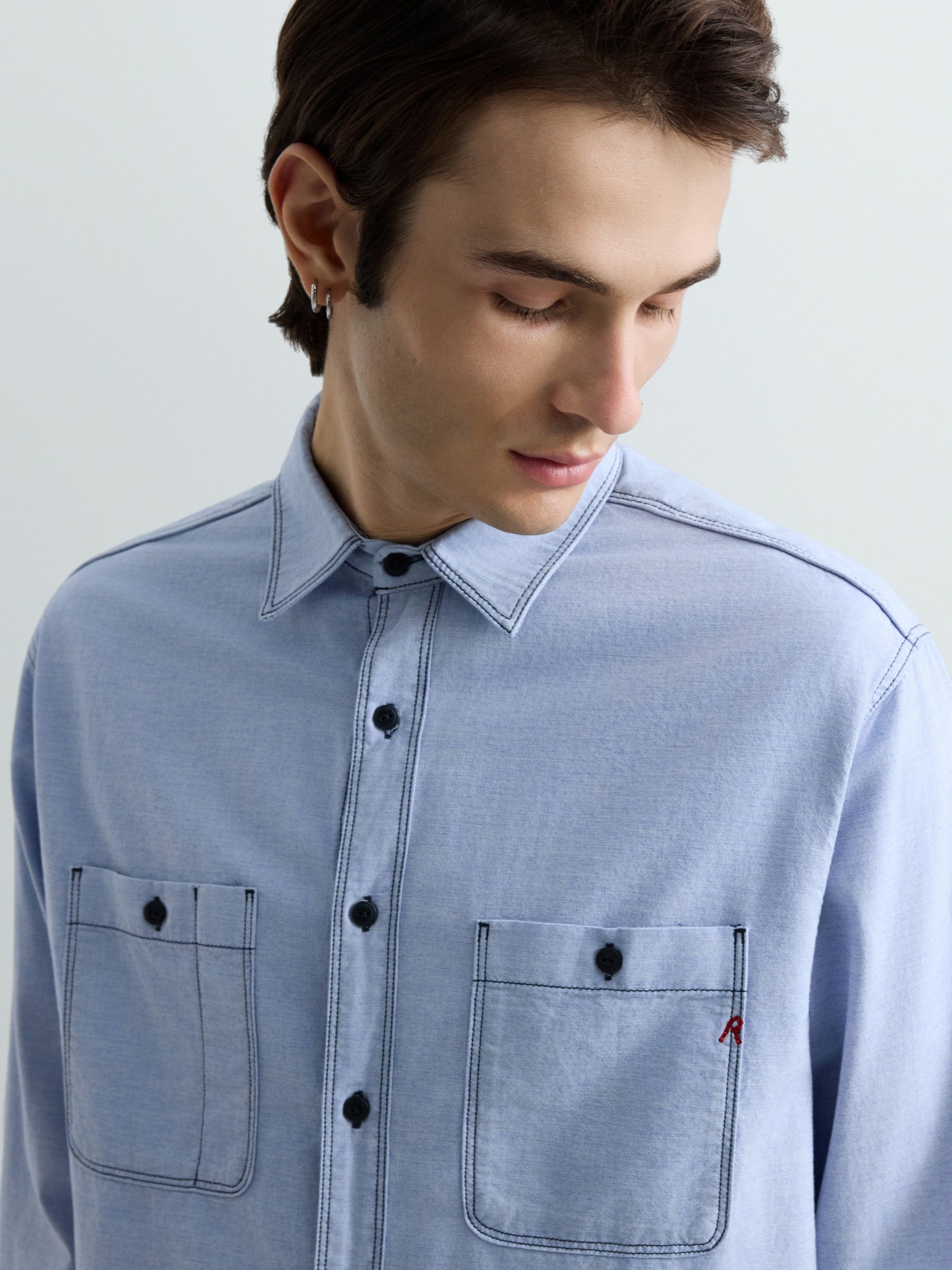 M4150 .000.85496 Marškiniai ilgomis rankovėmis ir dviem kišenėmis priekyje su "R" raidės įsiuvu. Užsegimas sagomis.