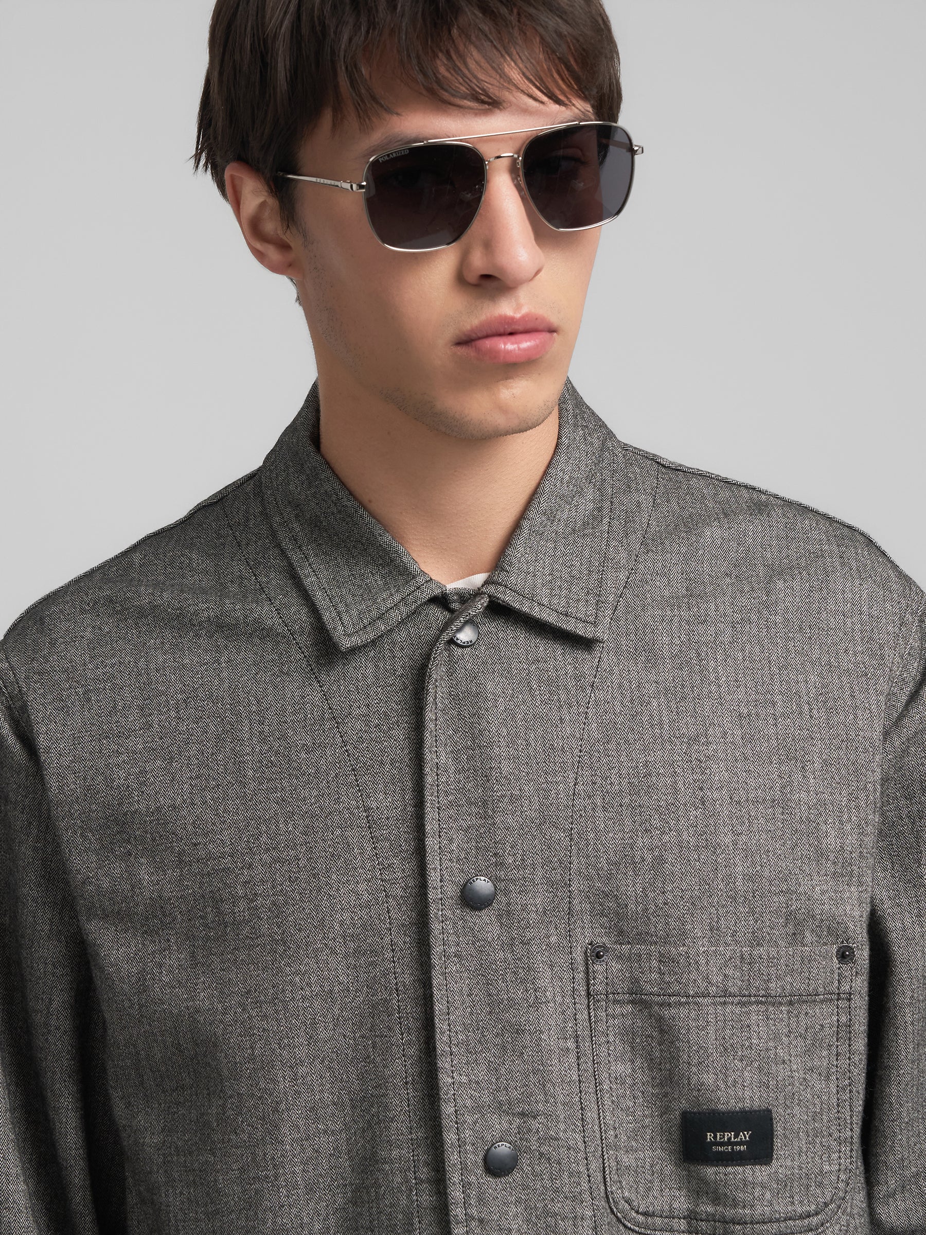 MV872 .000.85389 Marškiniai su trimis kišenėmis ir "REPLAY įsiuvu priekyje. Užsegimas spaudėmis.