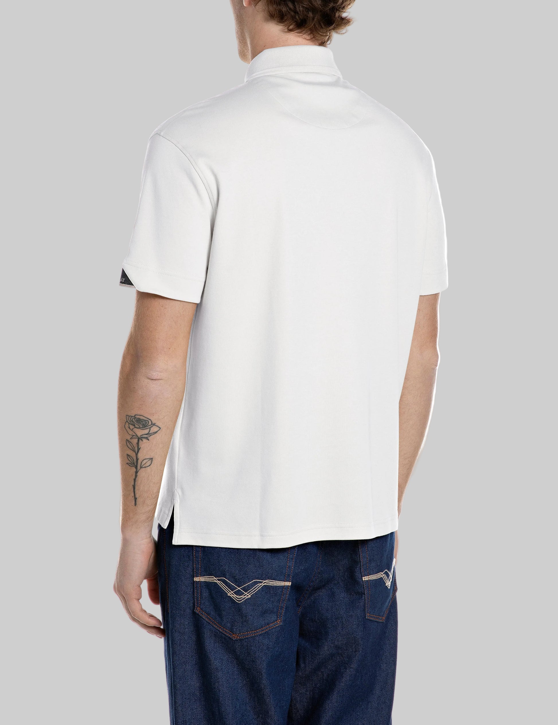 M3433 .000.24040 Polo marškinėliai trumpomis rankovėmis su kišene ant krūtinės ir "R" raidės įsiuvu. Su "REPLAY" įsiuvu ant rankovės. Užsegimas sagomis.