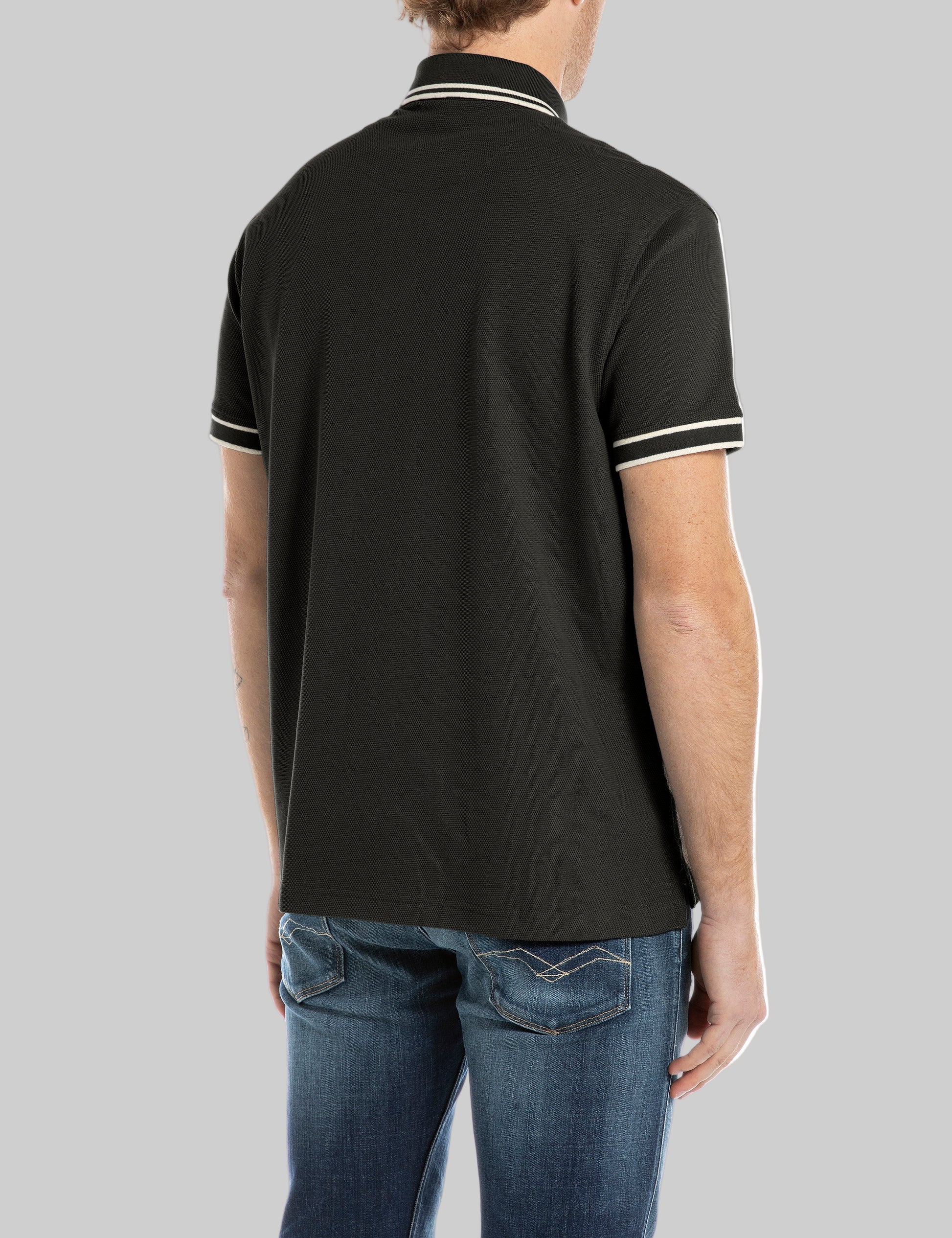 M3274 .000.23966 Polo marškinėliai trumpomis rankovėmis , užsegimas sagomis. "R" raidės įsiuvas ant krūtinės.