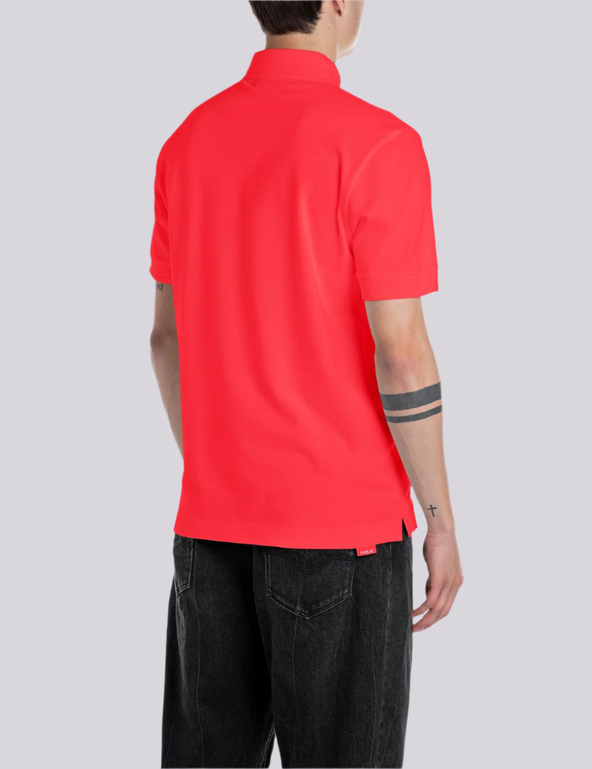 M3003 .000.20623 Polo marškinėliai trumpomis rankovėmis su "R" raidės įsiuvu ant krūtinės ir "REPLAY" įsiuvu nugaroje. Užsegimas sagomis.